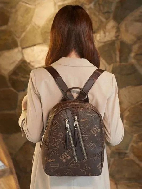شنطة باك جلد بتصميم نقوش مميز مزودة بجيوب امامية