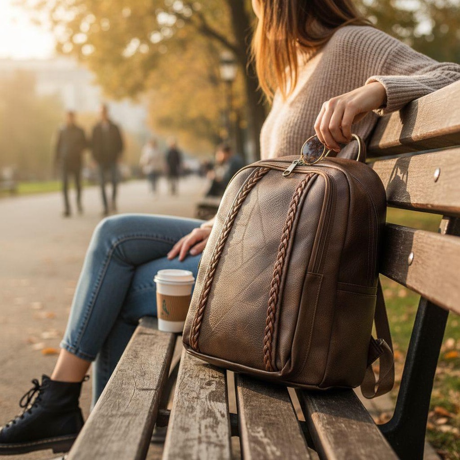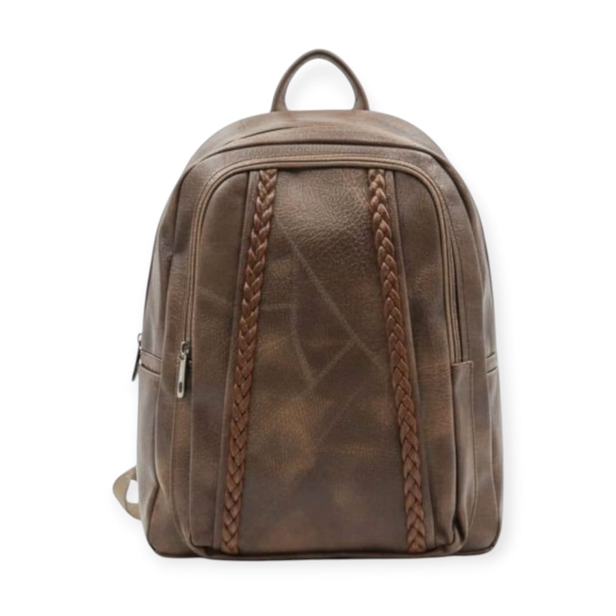 شنطة باك جلد بتفاصيل مضفرة بارزة