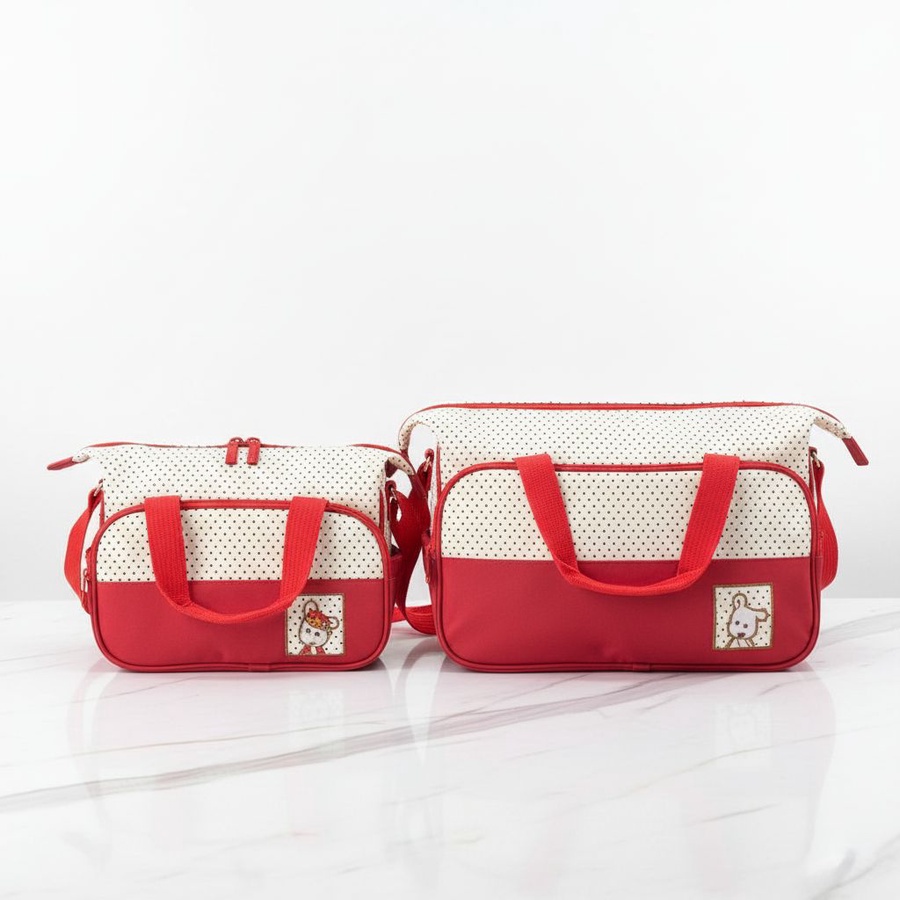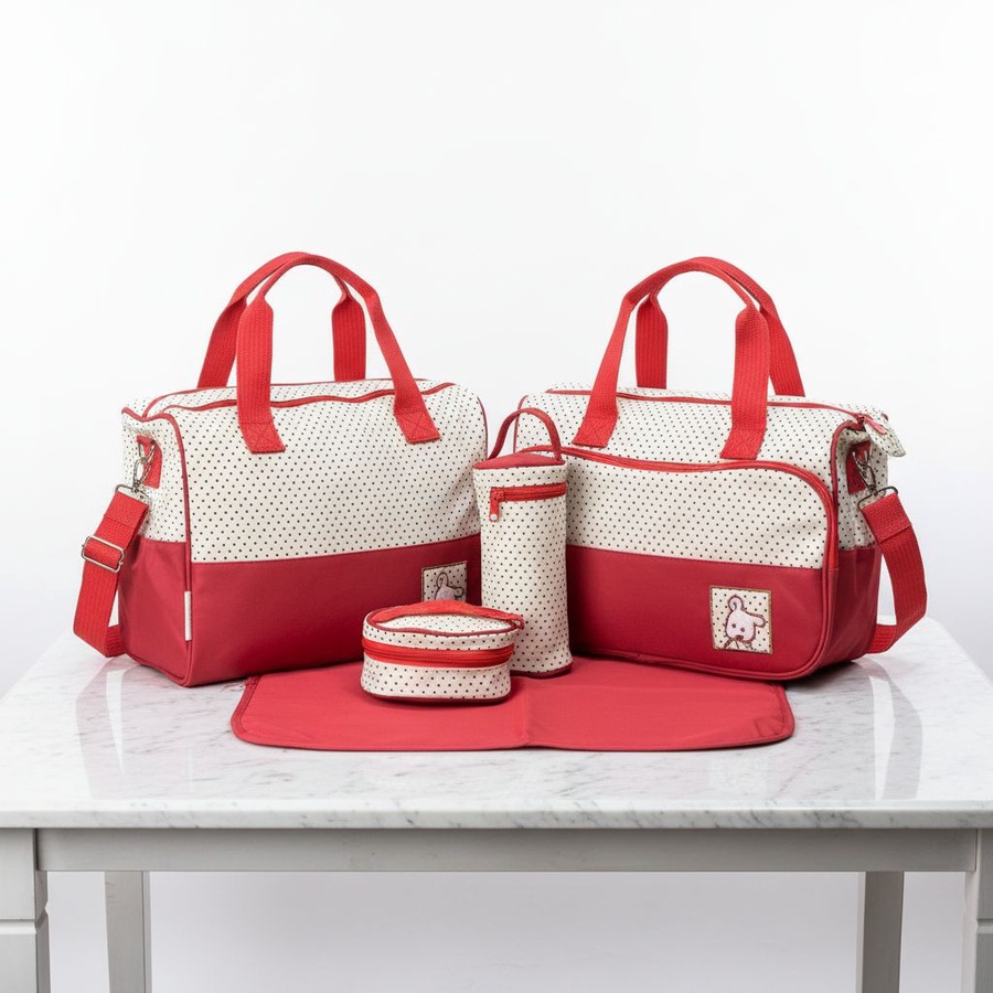 تتضمن حقيبتين بأحجام مختلفة وحافظة رضّاعة وحصيرة تغيير مضادة للماء.