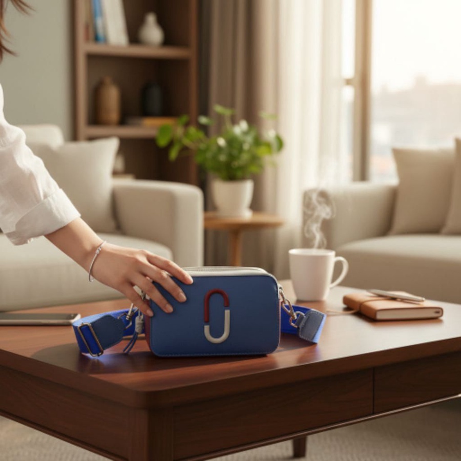 شنطة كروس جلد بحزام قماش ماركة marc jacob