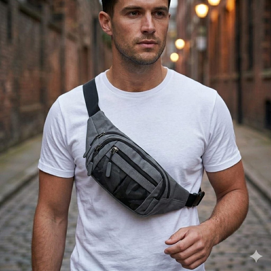 - حزام متين ومريح: حزام خصر عريض وقوي مع "كلبس" جامبو، سهل التعديل عشان تلبسها حول الوسط أو "كروس" على الصدر.