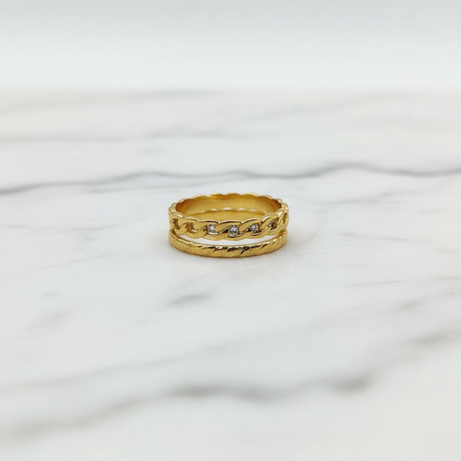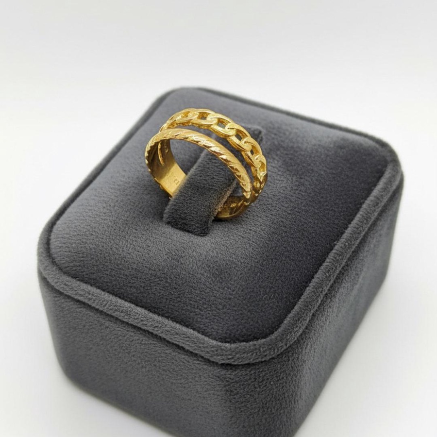 خاتم ستانلس ستيل دهبى بتصميم مزدوج منقوش قابل للتوسيع ليناسب جميع المقاسات