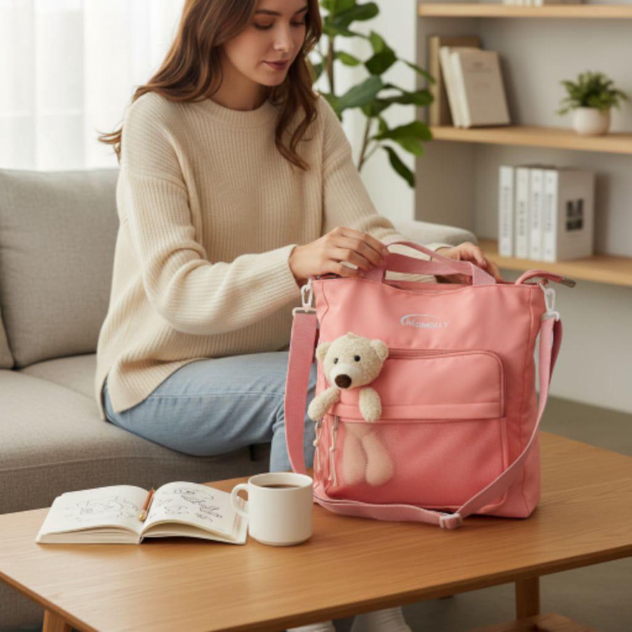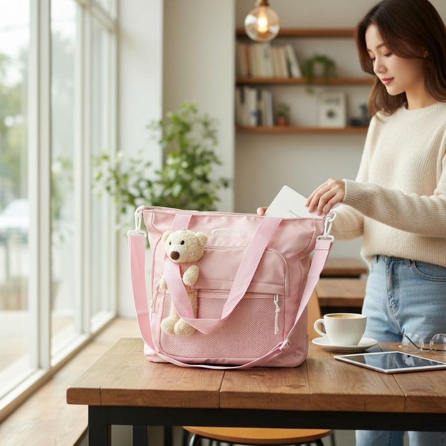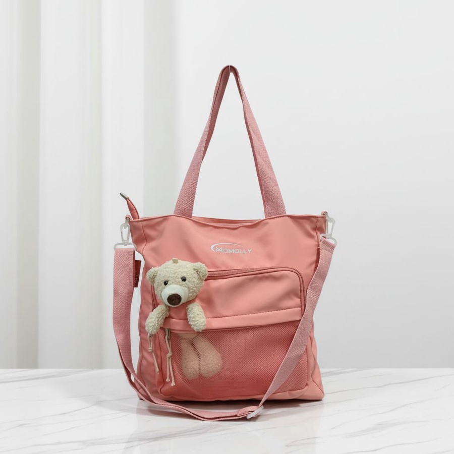 شنطة كروس momlly بدمية الدب مع جيب شبكى شفاف اطلبيها الان