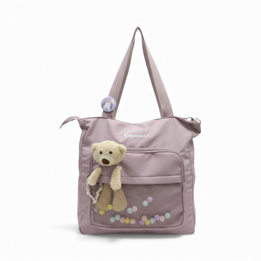 شنطة كروس momlly بدمية الدب مع جيب شبكى شفاف