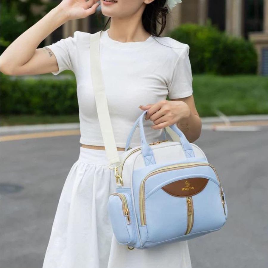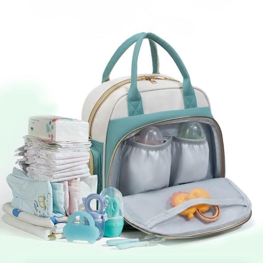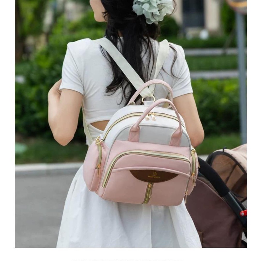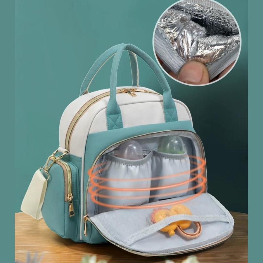 شنطة حفاضات أطفال عملية بعزل حراري وجيوب متعددة، تصميم أنيق للأمهات، مثالية للخروجات والسفر اليومي مع الطفل.