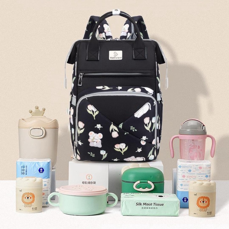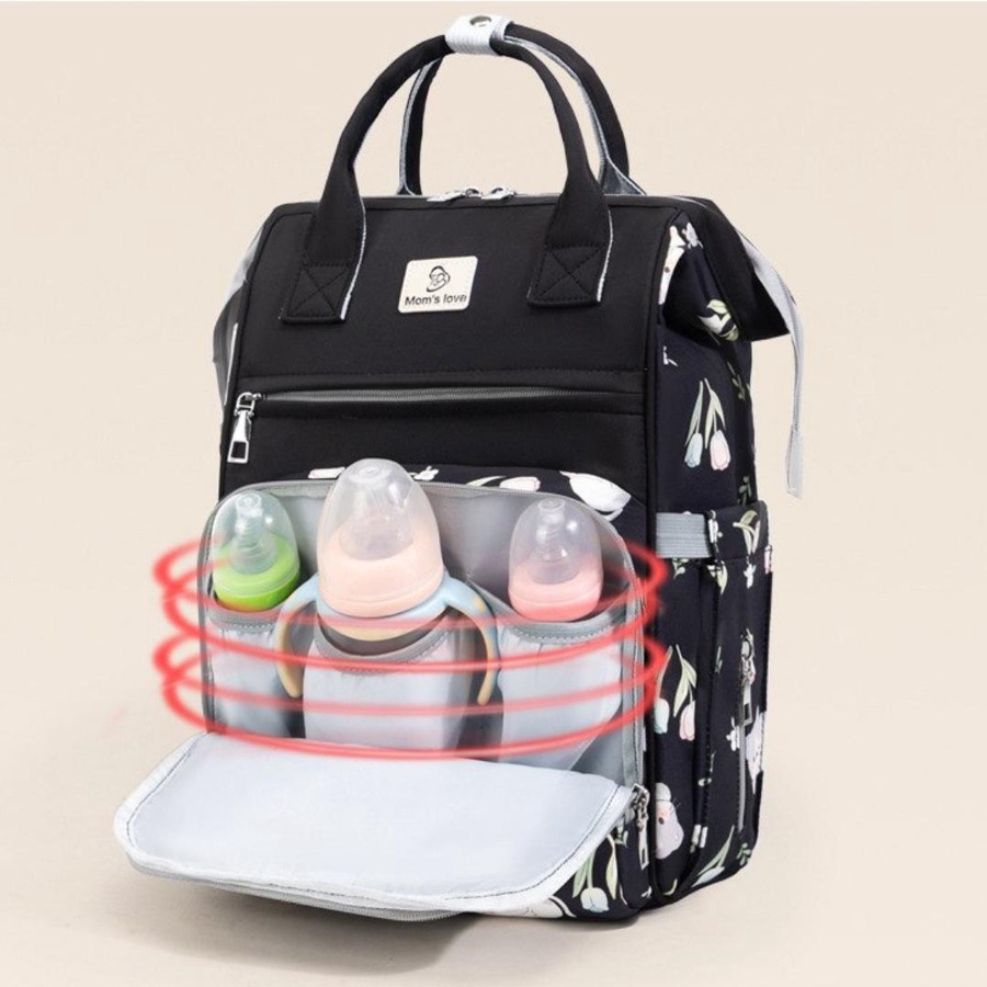- مساحة داخلية واسعة بجيوب شبكية لتنظيم الحفاضات والملابس.