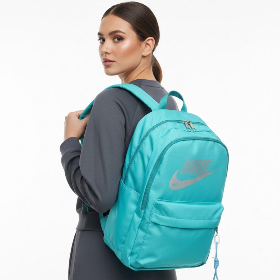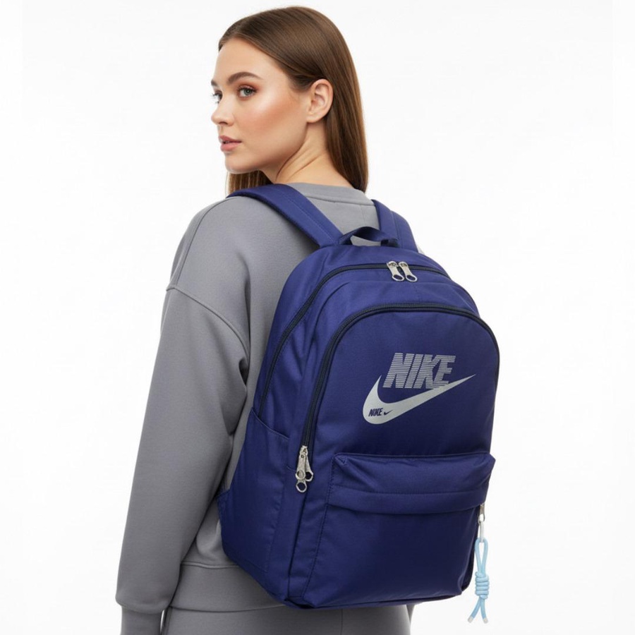 شنطة الظهر السبورت دي بتقدّم استايل رياضي بسيط يناسب الشباب والبنات، بتصميم سادة مع لوجو أمامي كبير مستوحى من Nike يدي الشنطة شكل عصري وواضح. المساحة الداخلية واسعة تشيل كتب، نوت بوك أو لابتوب خفيف، مع جيب أمامي بسوستة للأغراض السريعة وجيوب جانبية لزجاجة المياه أو الشاحن وسماعاتك.