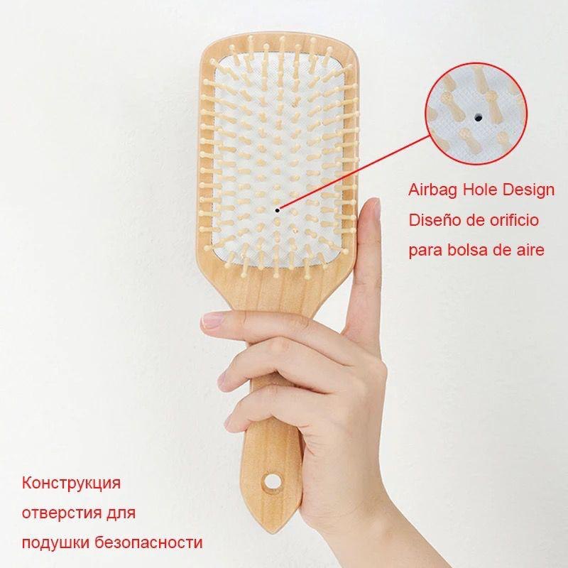 فرشاة شعر مسطحة بيد خشبية لتسريح الشعر وفك التشابك بلطف، مناسبة لكل أنواع الشعر وتوزيع الزيوت الطبيعية في فروة الرأس لاطلالة صحية كل يوم