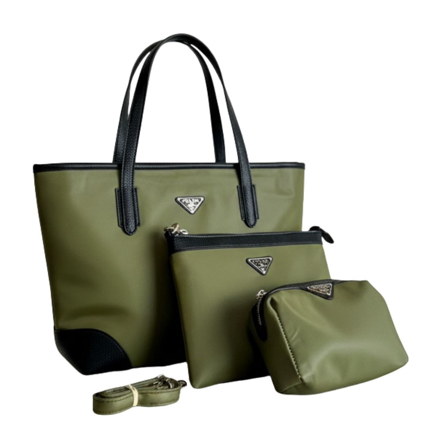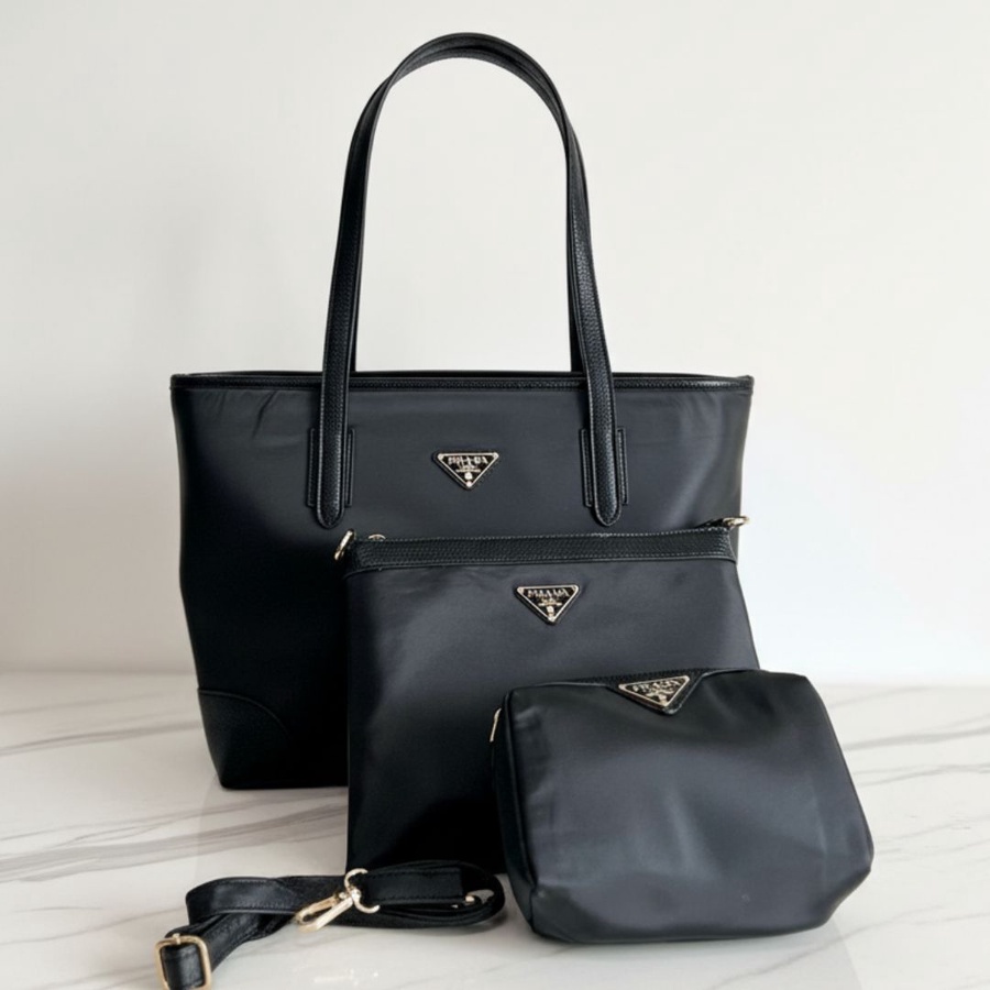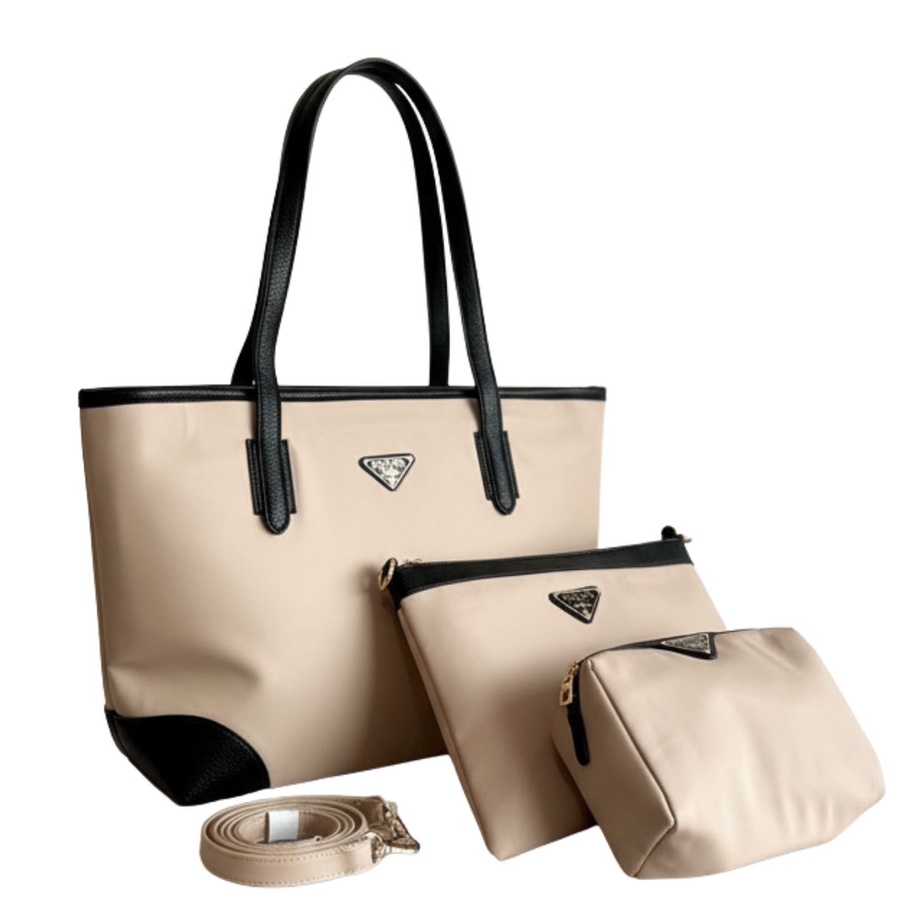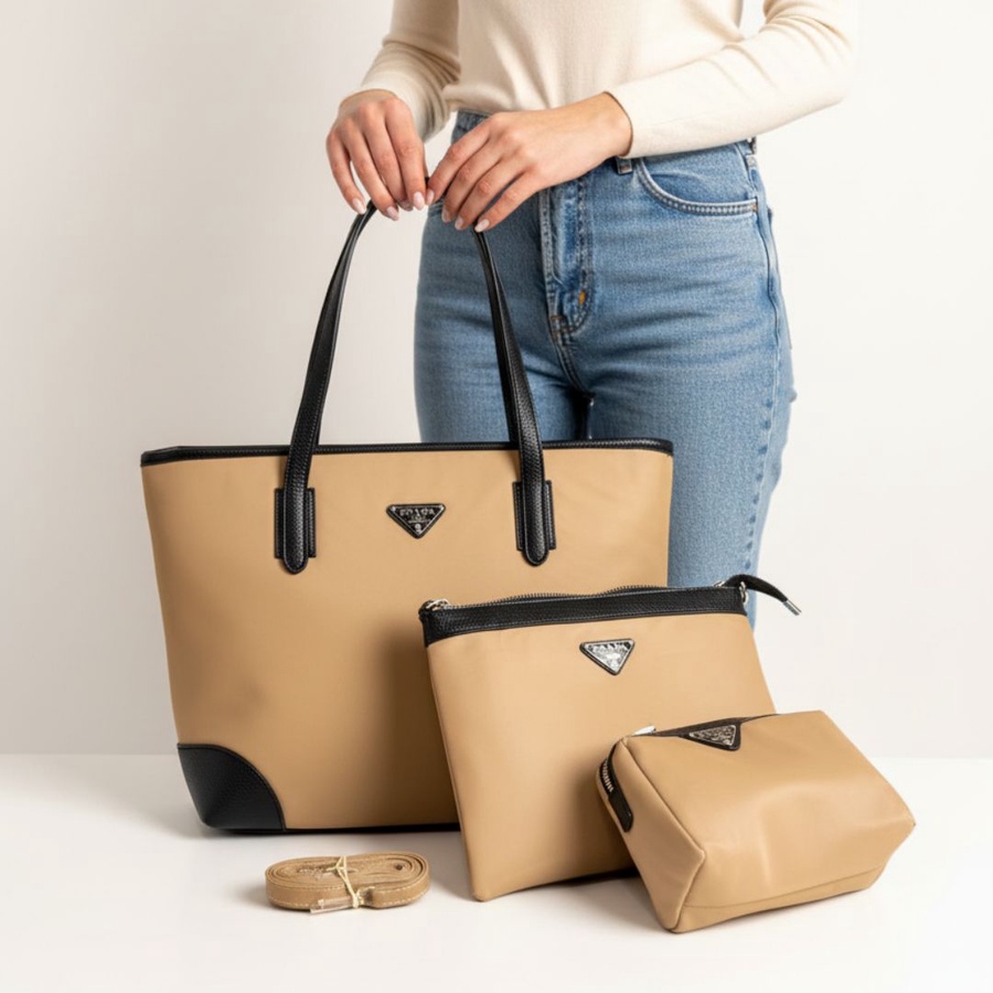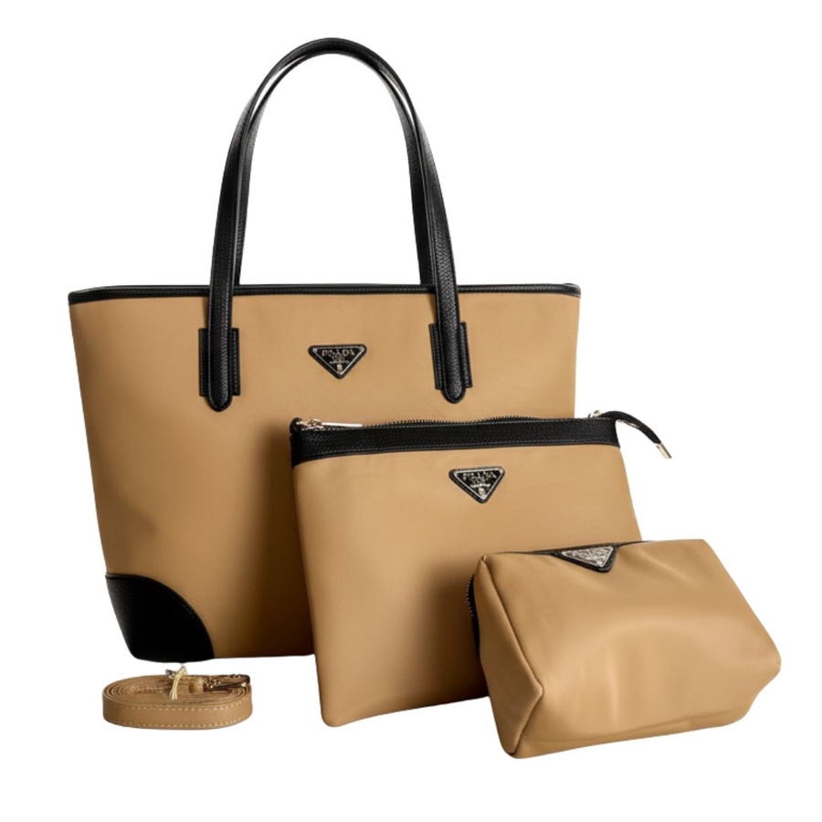 شنطة حريمي يد وكتف 3 قطع ستايل برادا Prada – شنطة كبيرة مع باوتش وشنطة مكياج