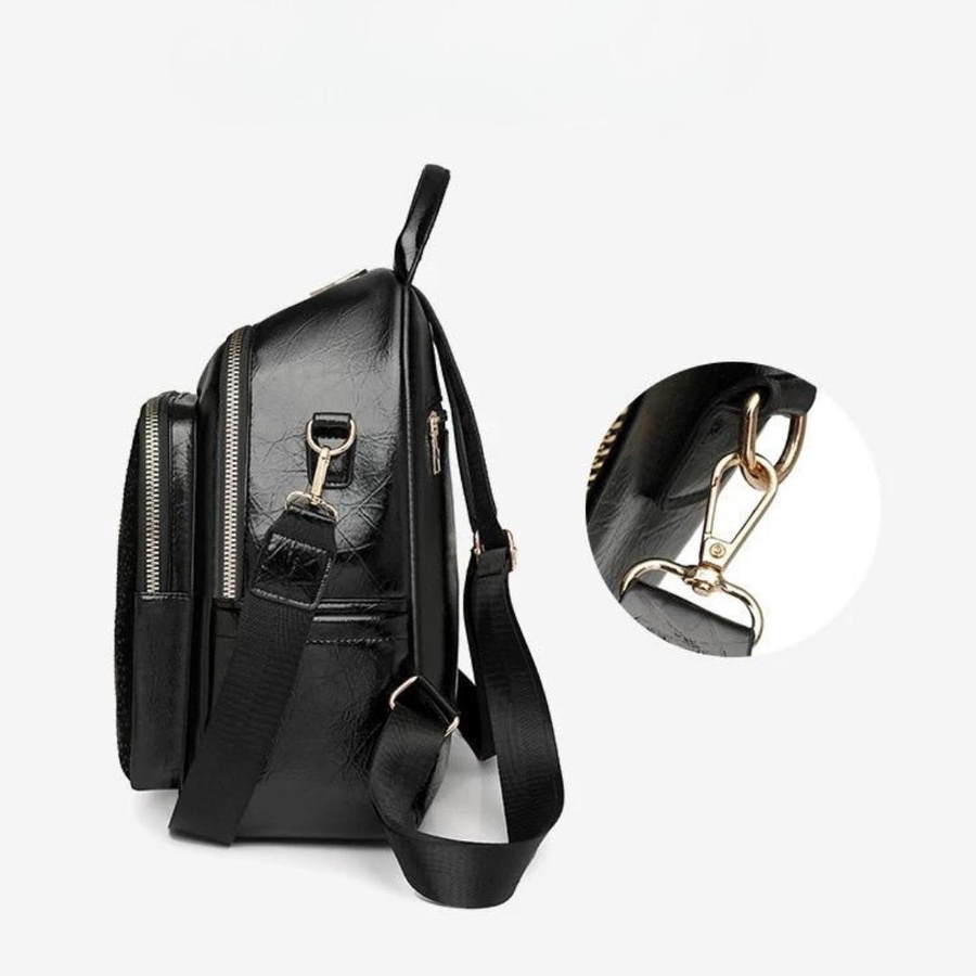 راحة تامة لأكتافكِ: أحزمة ظهر جلدية متينة وقابلة للتعديل، مصممة لتوزيع الوزن بشكل مثالي لتخفيف الضغط مهما طالت ساعات ارتدائها.