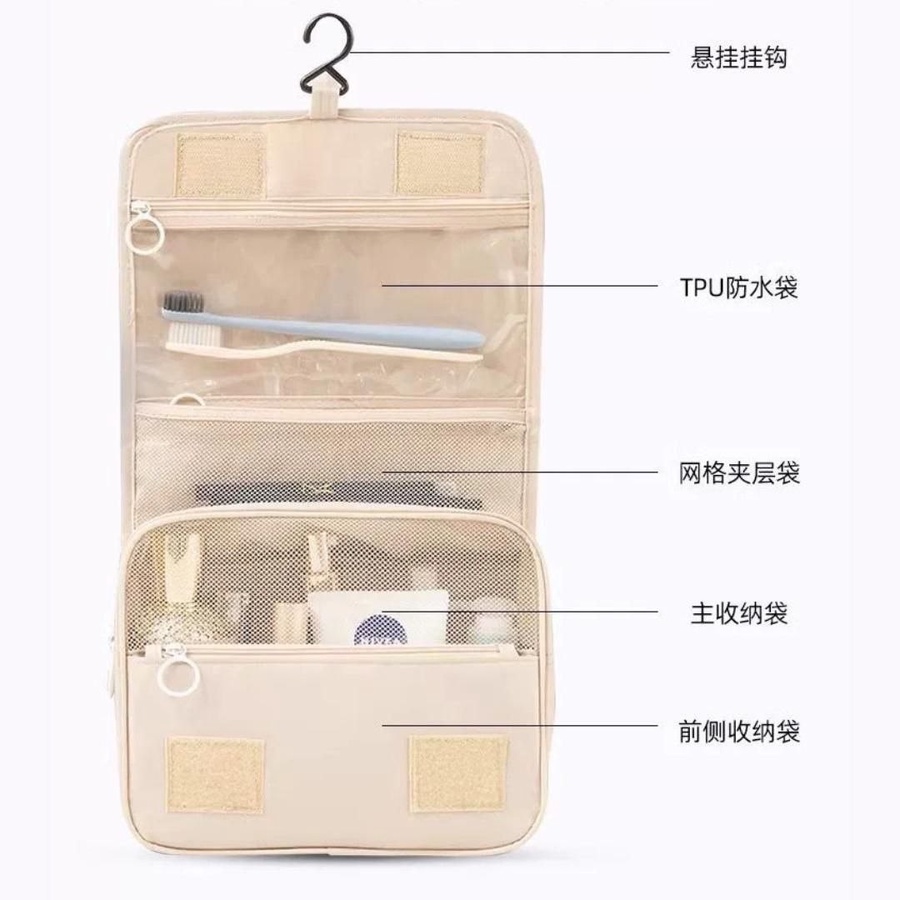 - تقسيم داخلي عبقري: الشنطة مصممة بجيوب وفواصل داخلية مدروسة، تسمح لكِ بوضع العلب بشكل قائم لمنع الانسكاب، مع جيوب شبكية وسوست داخلية للأدوات الرفيعة والفرش.