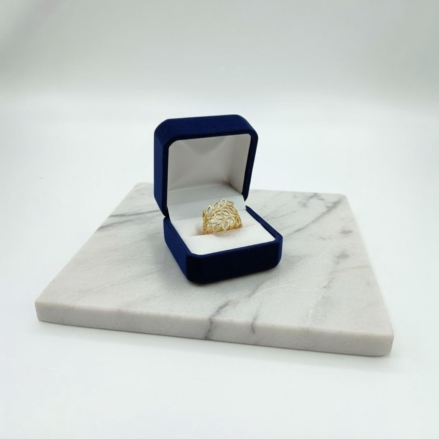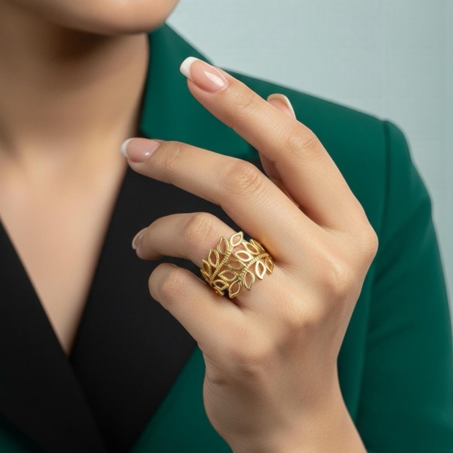 خاتم استانليس دهبى بتصميم ورق شجر قابل للتوسيع ليناسب جميع المقاسات