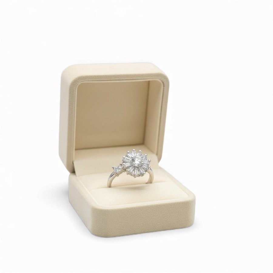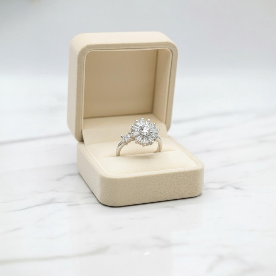 خاتم زركون فضى بفصوص لامعة تمنحك بريقًا يخطف الأنظار! مصنوع من خامات عالية الجودة غير قابلة للصدأ أو تغيير اللون