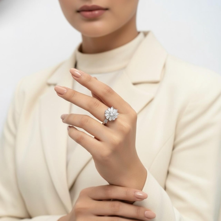 خاتم إكسسوار نسائي بتصميم فاخر ولمعة زركون