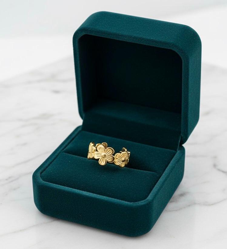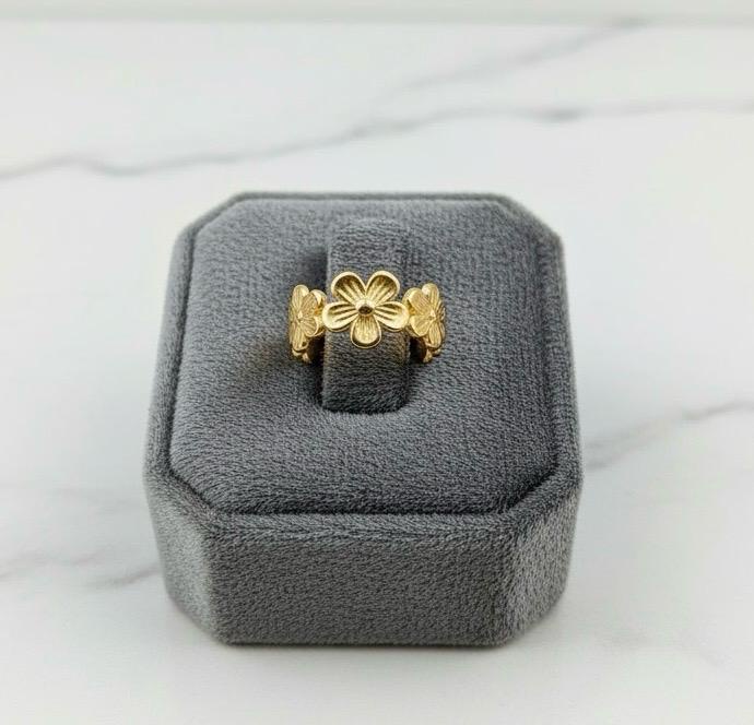خاتم ستانلس ستيل دهبى بتصميم ورود متشابكة قطعة انثوية انيقة قابل للتوسيع ليناسب جميع المقاسات