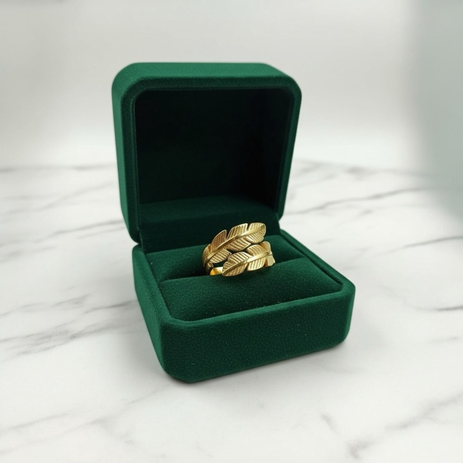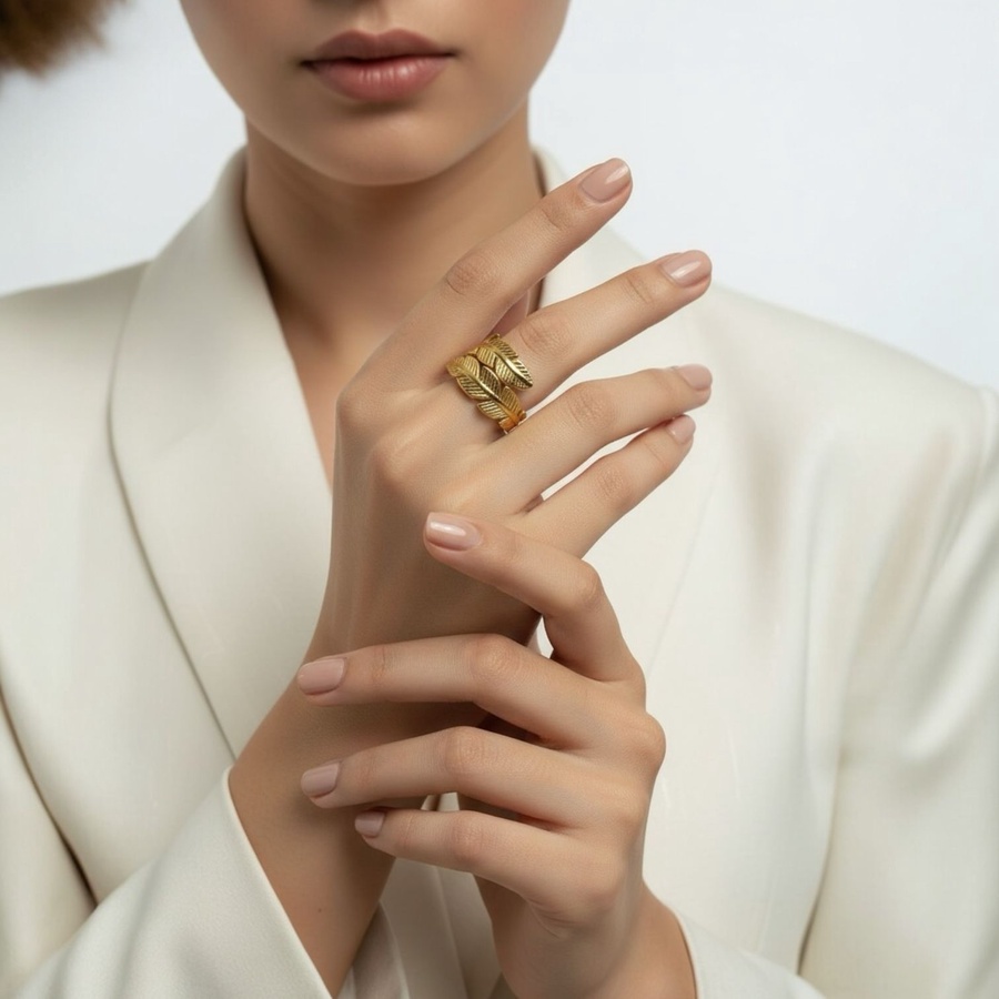 خاتم ستانلس ستيل دهبي لمسة رقيقة من الطبيعة لاطلالتك قابل للتوسيع ليناسب جميع المقاسات