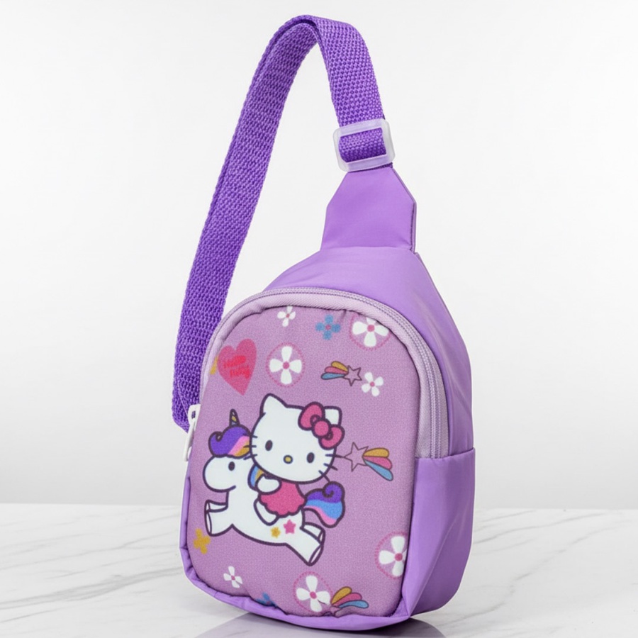 شنطة كتف بناتي صغيرة برسومات لطيفة ، حزام قابل للتعديل وسوستة أمامية، مثالية للحضانة والخروجات الخفيفة للبنات