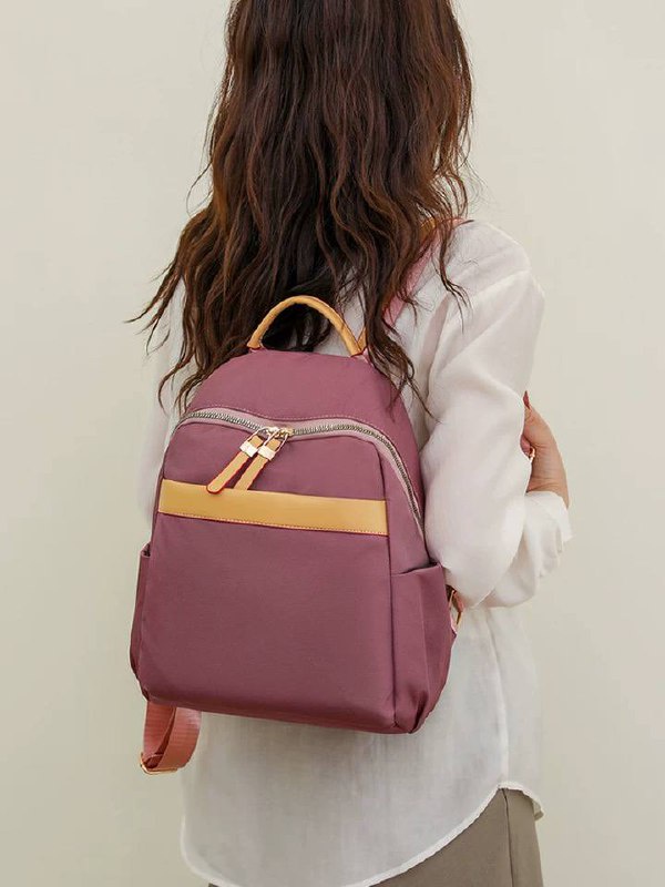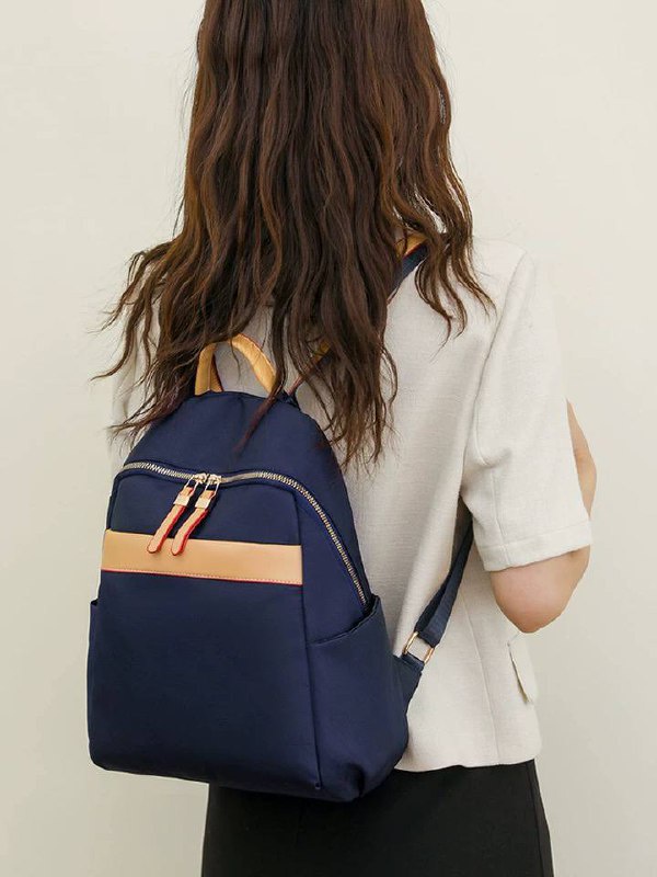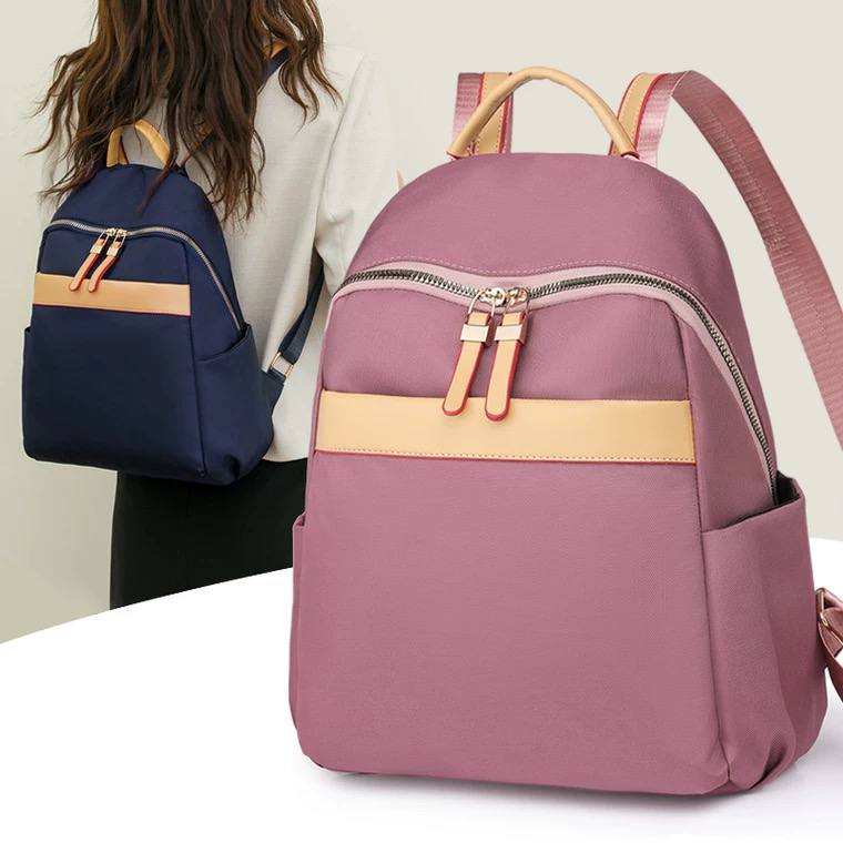 شنطة ظهر حريمى كاجوال بخامة متينة خفيفة، تصميم بسيط مع جيب أمامى وجيوب جانبية، مناسبة للجامعة، الشغل والخروجات اليومية وتنظيم المتعلقات.