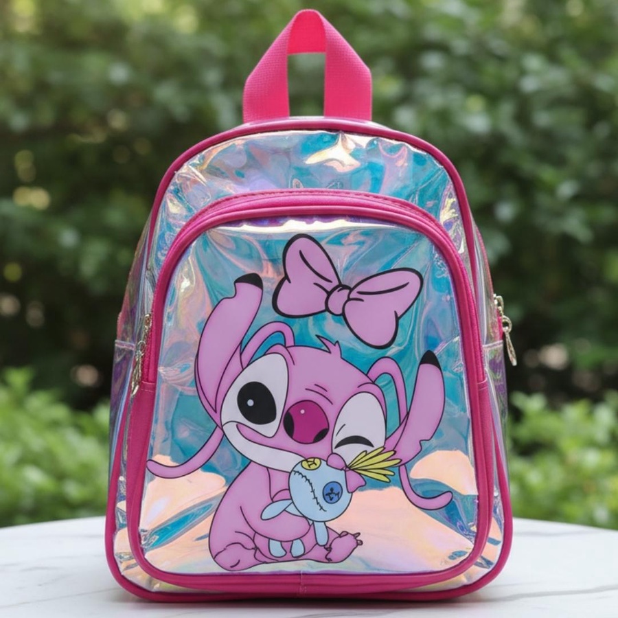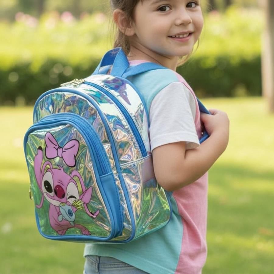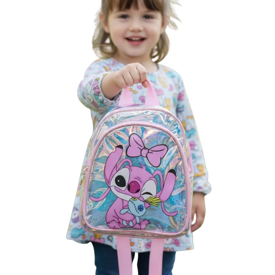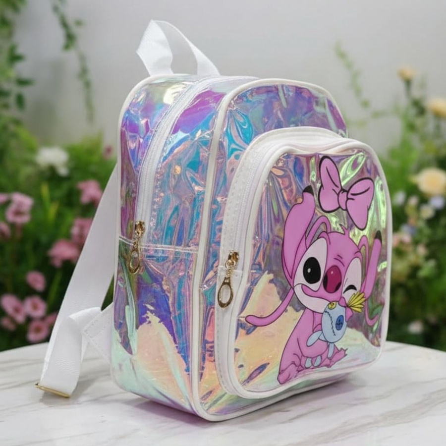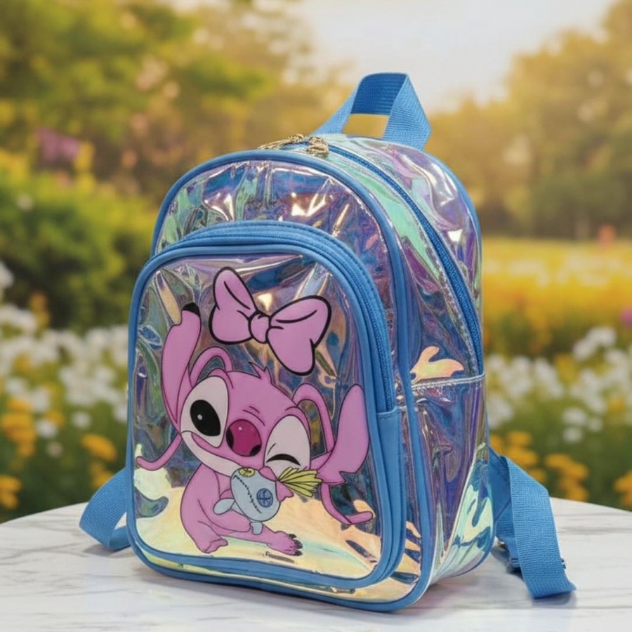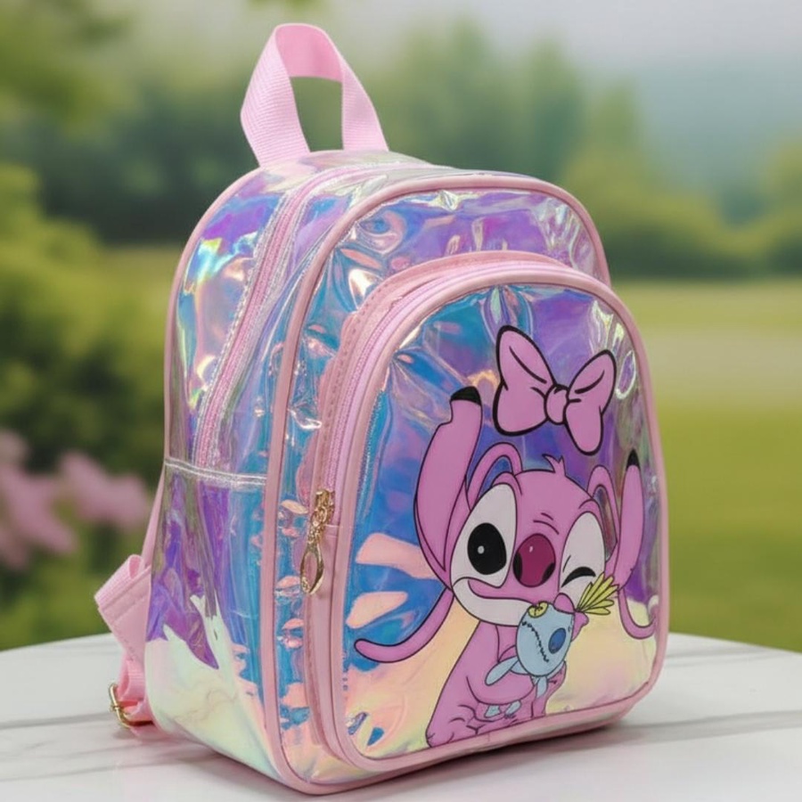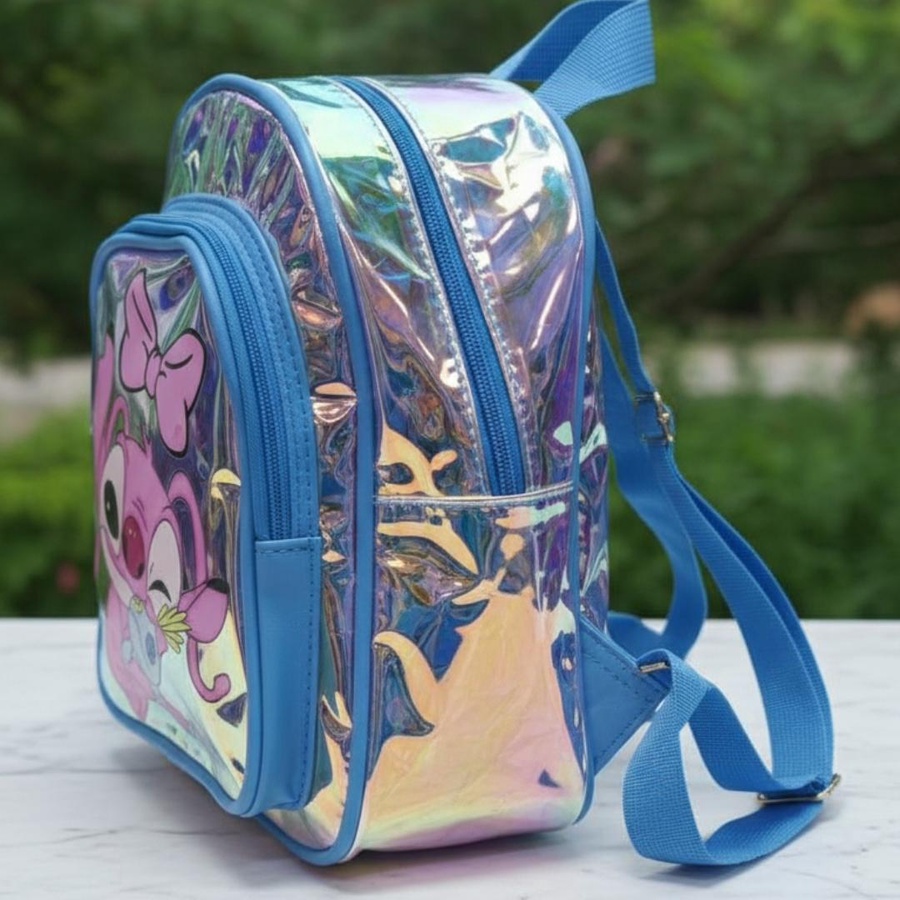 A cute hologram kids backpack with Stitch girl print, lightweight, stylish, and easy to carry.