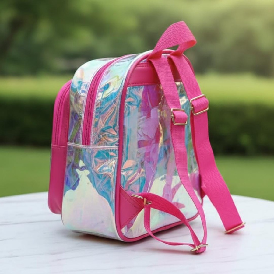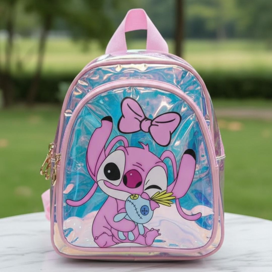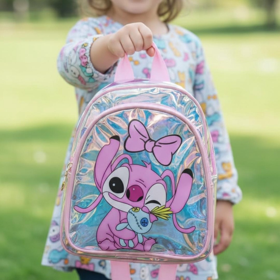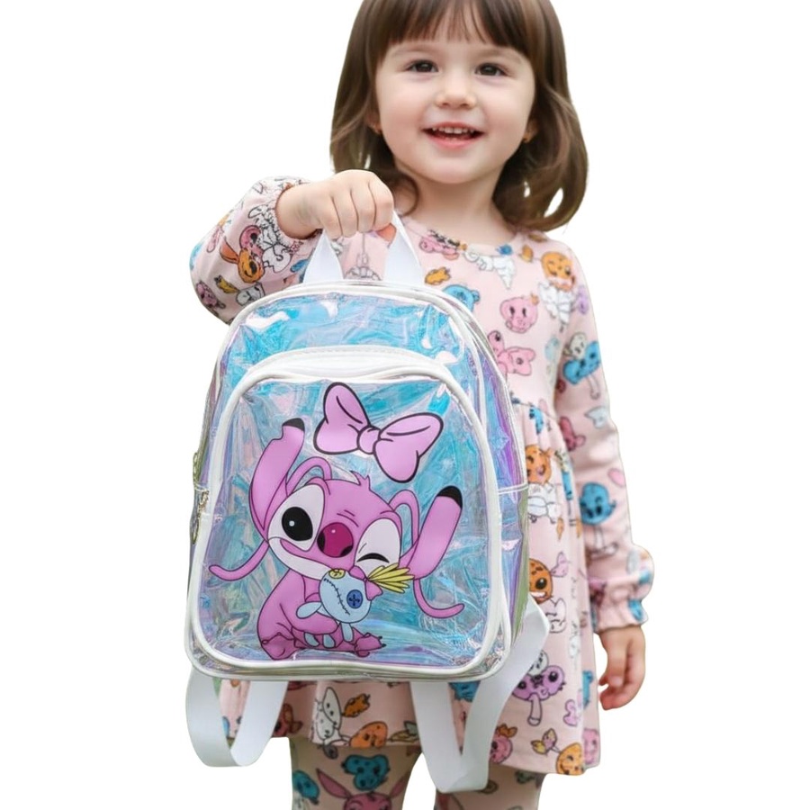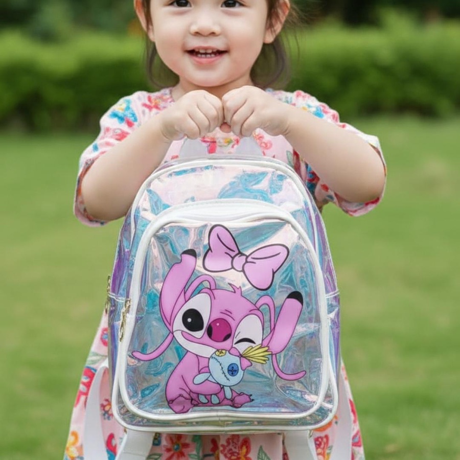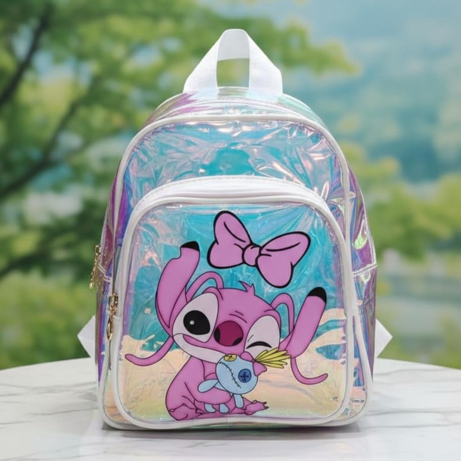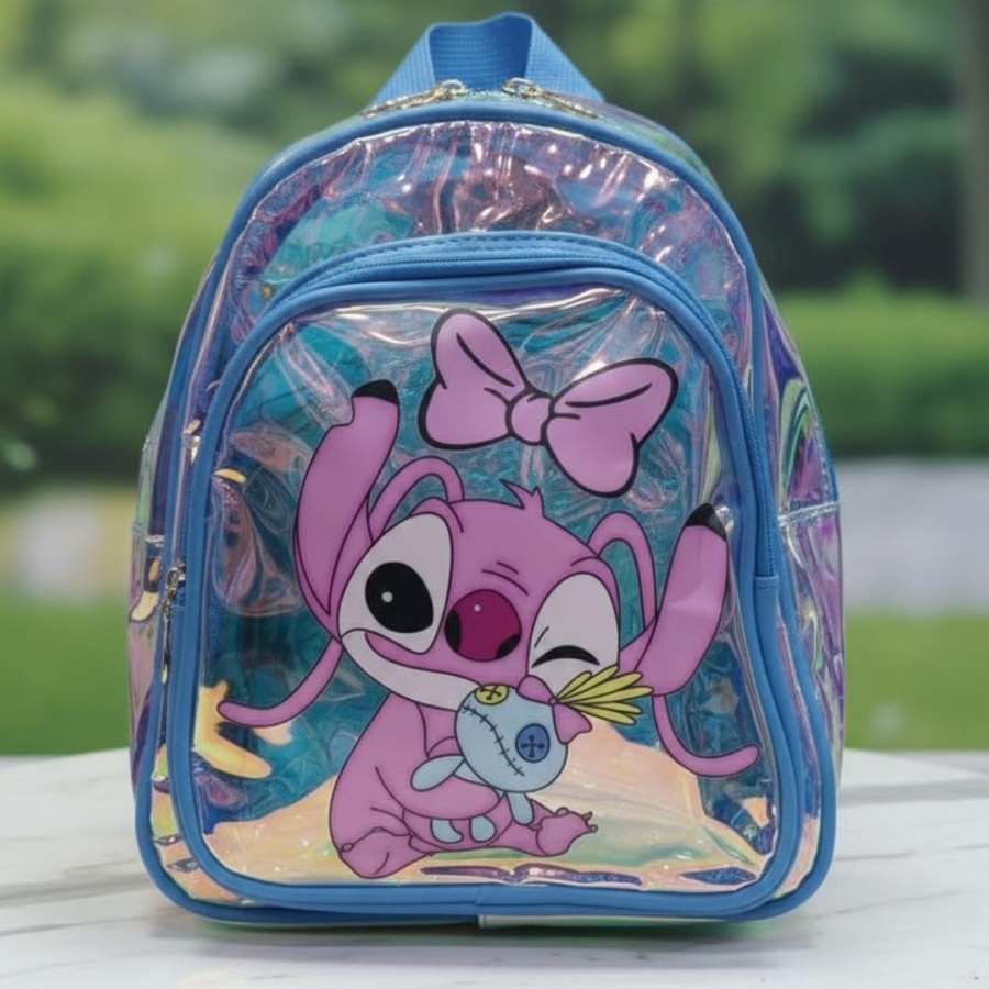 لو بتدوري على شنطة تخلي طفلتك مميزة، فـ Stitch Girl Hologram Kids Backpack اختيار رائع! شنطة شفافة هولوجرام (Transparent Hologram) بتعكس ألوان جميلة مع الضوء، ومع رسمة كارتون بناتي كيوت على الجيب الأمامي بتدي شكل لطيف ومحبب جدًا للأطفال.