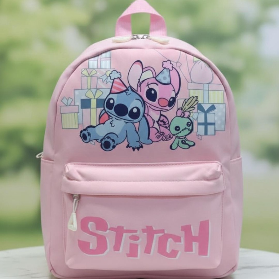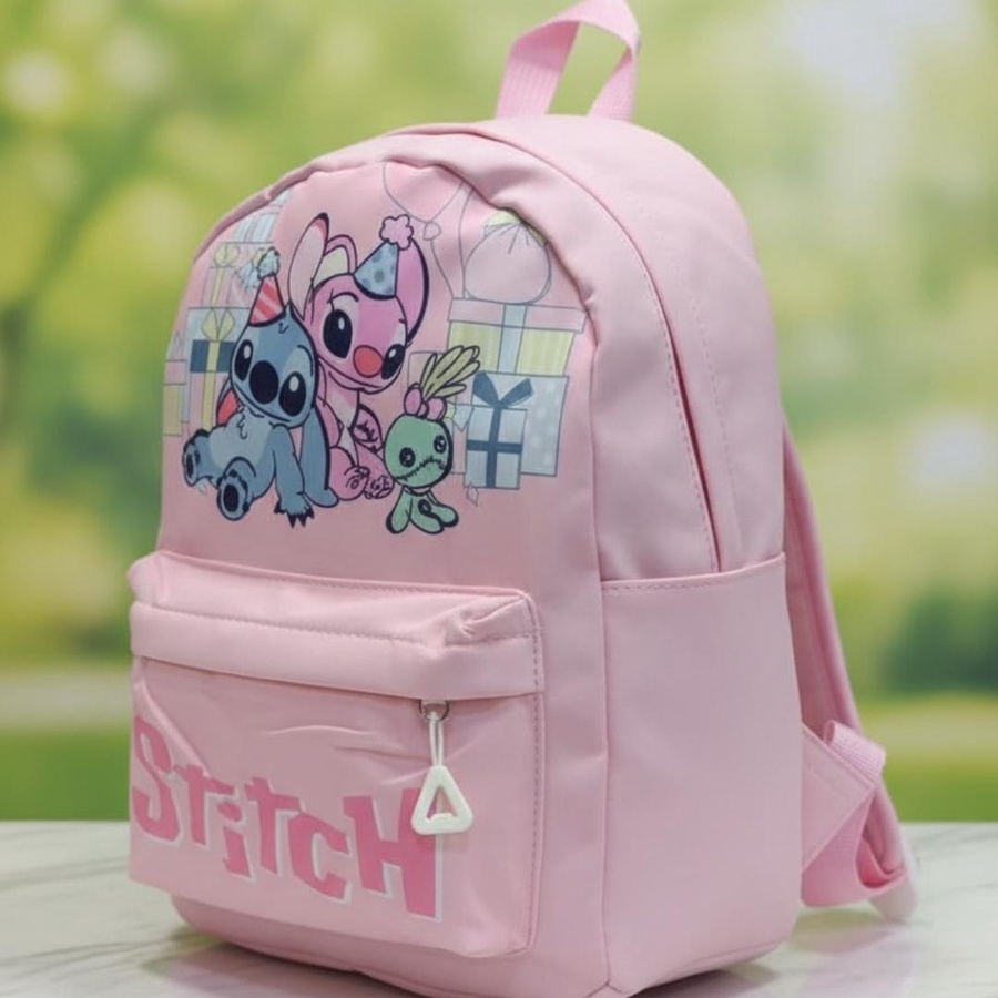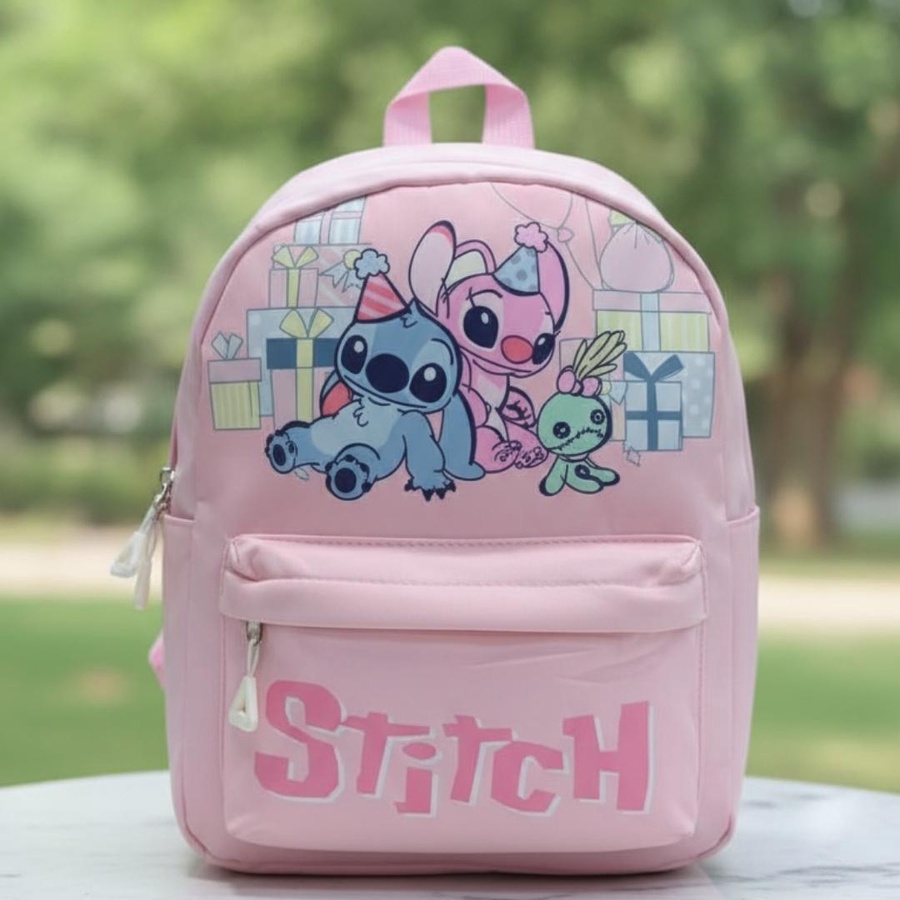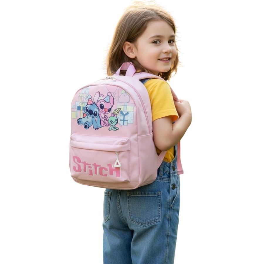 الشنطة دي معمولة مخصوص عشان تخلي أي طفل مبسوط وهو رايح الحضانة أو خارج يتمشى. تصميم بينك ناعم مع رسمة Stitch اللطيفة وشخصيات كيوت حوالينه، يخلي الشنطة شكلها مبهج وطفولي جدًا.
