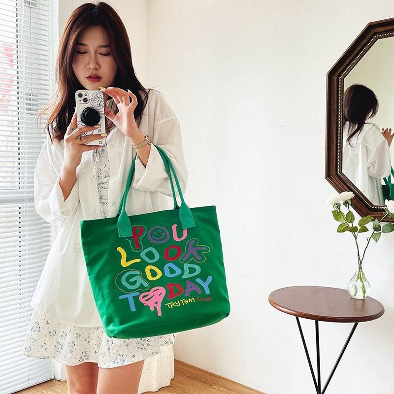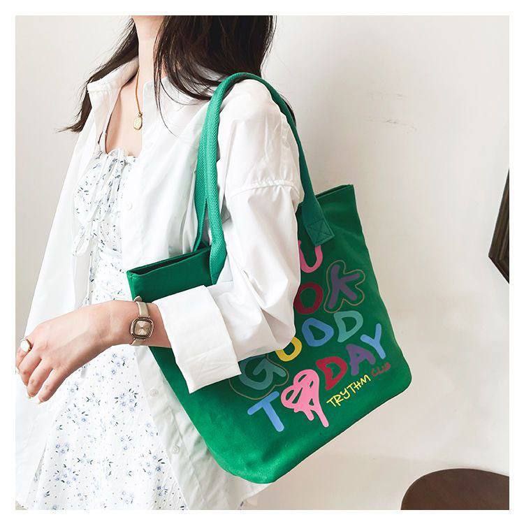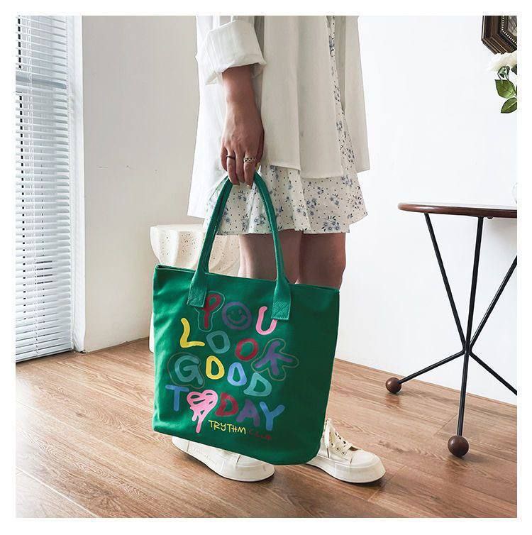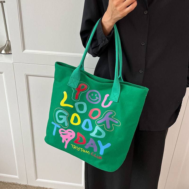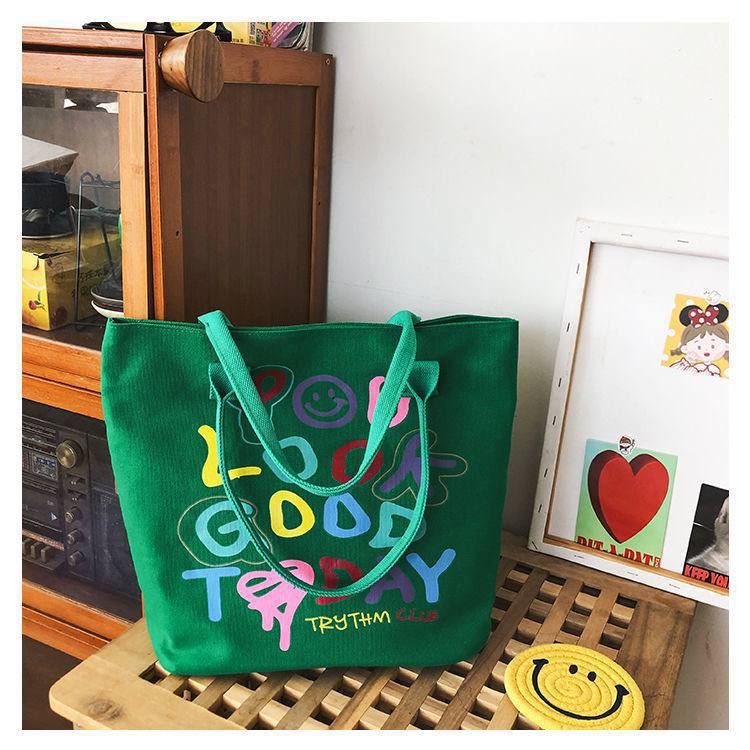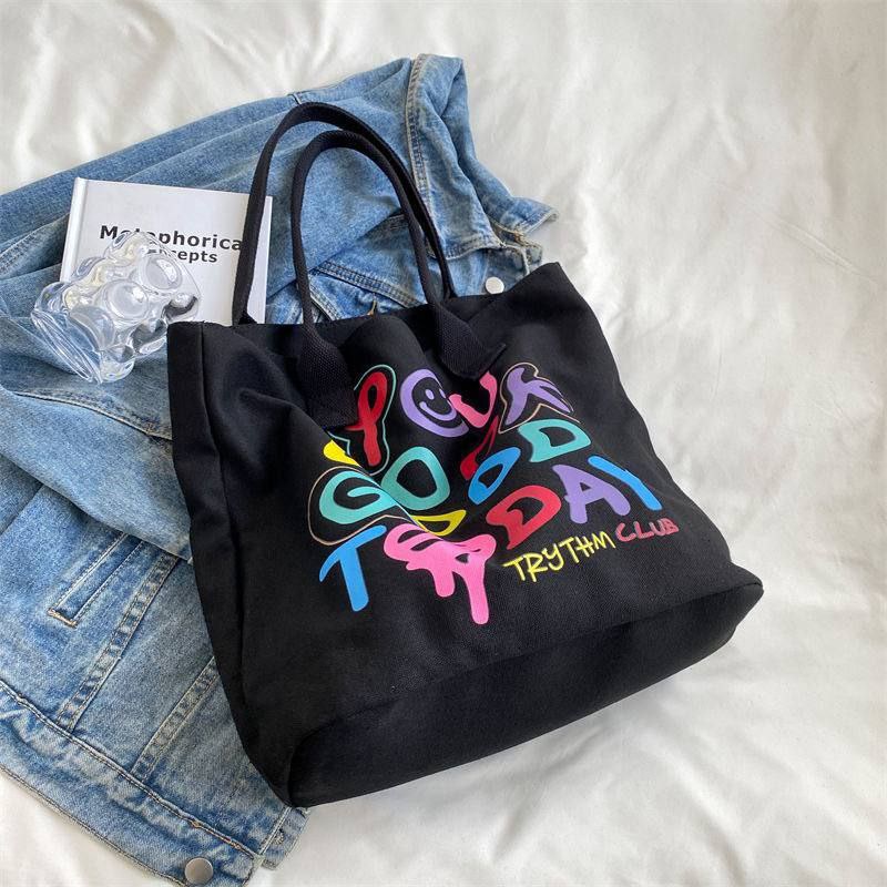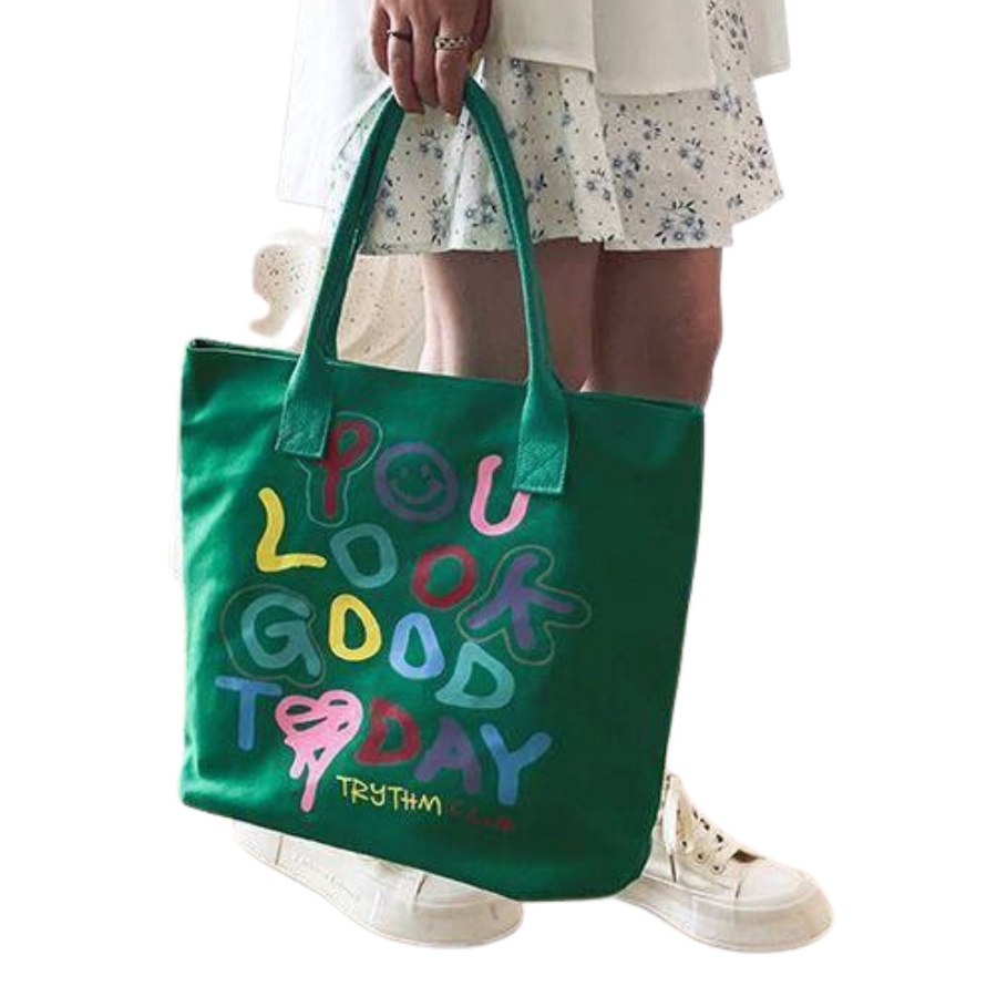 شنطة الكتف القماش دي مناسبة للبنات اللي بتحب الستايل الكاجوال المرح، مطبوعة لطيفة تخلي شكلها مميز وتدي لوك مختلف مع أي طقم بسيط. مساحتها واسعة تشيل نوت بوك، كتاب، تابلت خفيف، المحفظة، الموبايل وكام قطعة ميكب، فتنفع قوي للجامعة، الدروس أو الخروجات مع الصحاب.