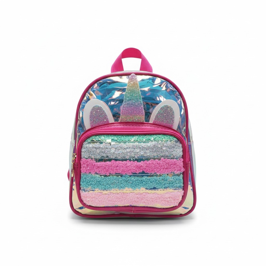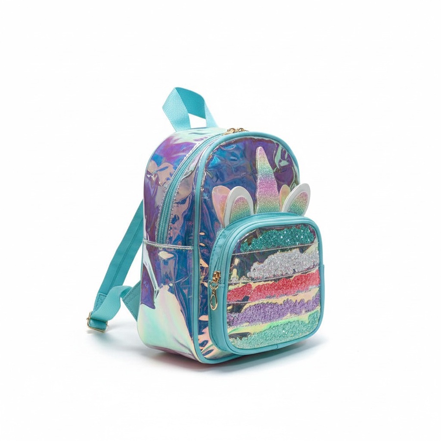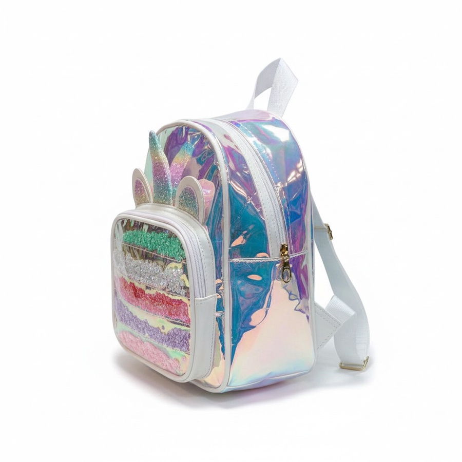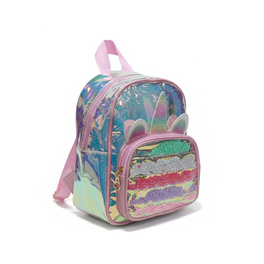 A cute and lightweight kids backpack with hologram shiny finish and unicorn design, making it fun and practical for everyday use.