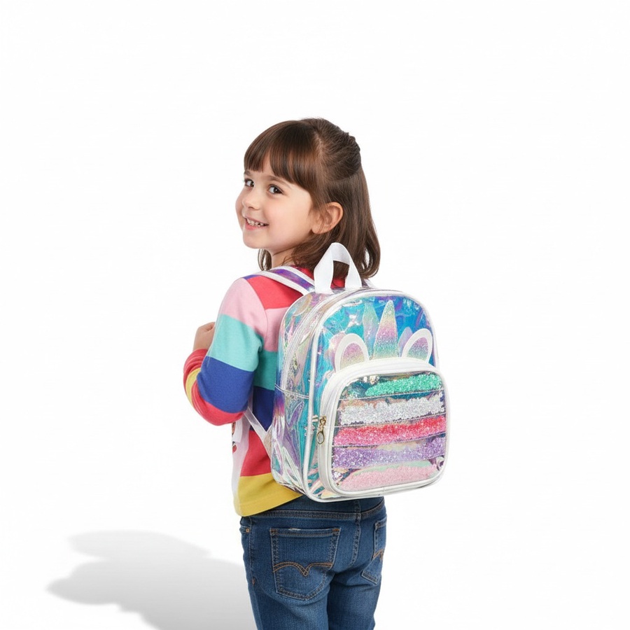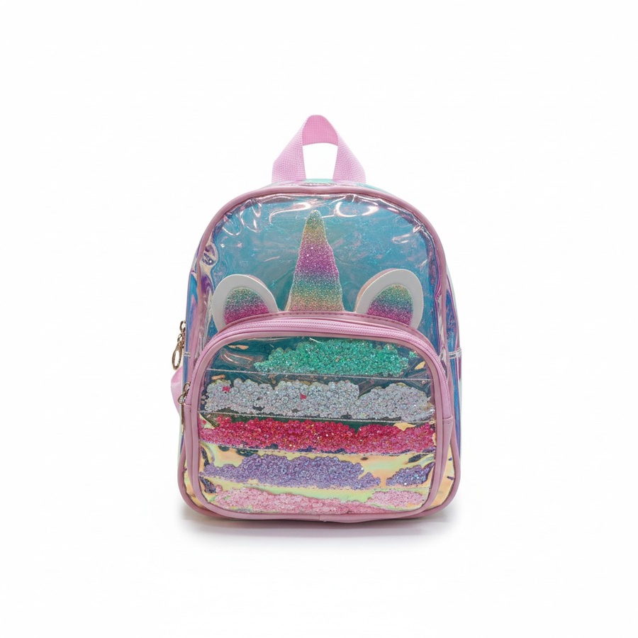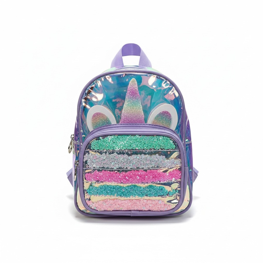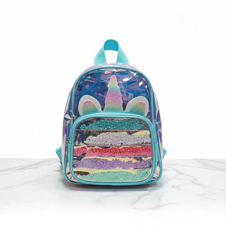 مصنوعة من خامة هولوجرام شفافة (Hologram Transparent Material) بتلمع وتعكس الألوان مع الضوء، ومع تصميم يونيكورن كيوت هتكون شنطة مفضلة لأي طفل.