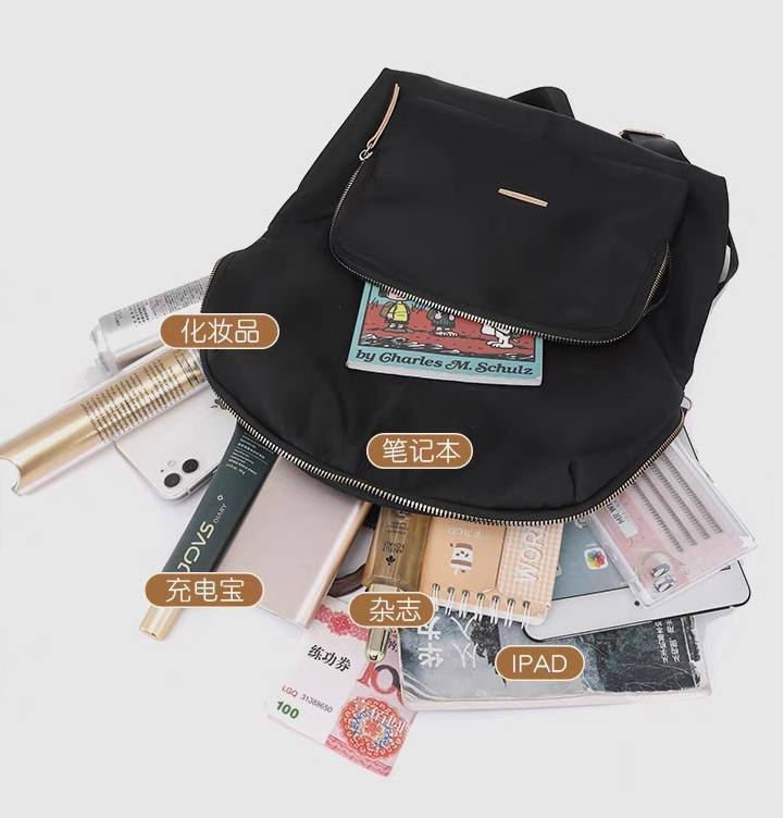 شنطة ظهر حريمى كاجوال بتصميم بسيط وأنيق، خامة متينة خفيفة مع جيب أمامى بسحاب وسعة عملية، مناسبة للجامعة، الشغل والخروجات اليومية.
