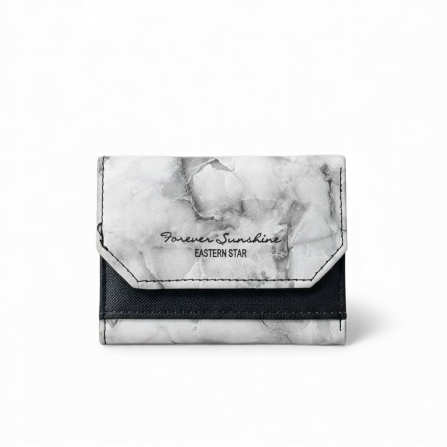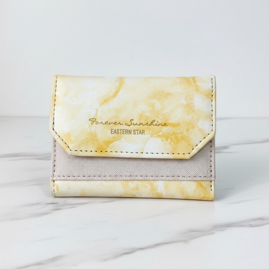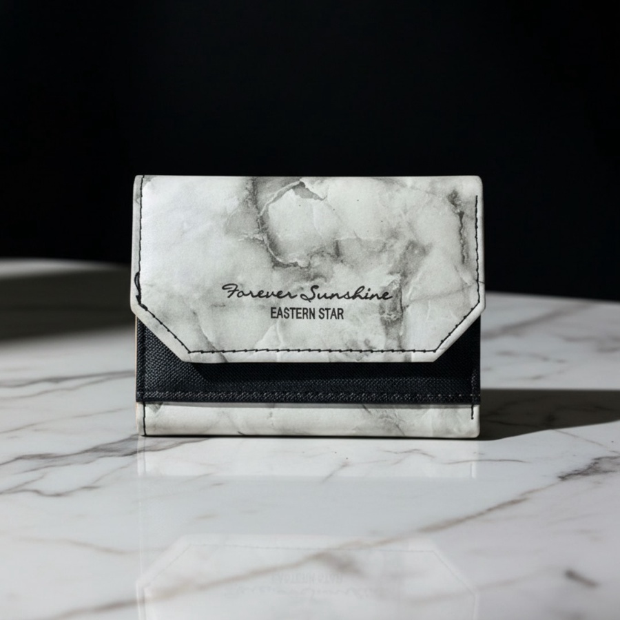 محفظة قصيرة بتصميم رخام فلاب أمامي مطبوع Forever Sunshine Eastern Star، مثالية للكاش والكروت في الاستخدام اليومي. .