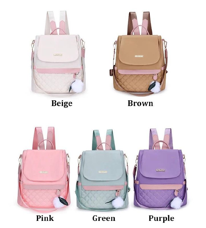 شنطة ظهر حريمى كاجوال بخامة متينة مقاومة للماء، تصميم أنيق يمكن استخدامها ظهر أو كروس، متعددة الجيوب مصممة ضد السرقة ومناسبة للجامعة والخروجات.