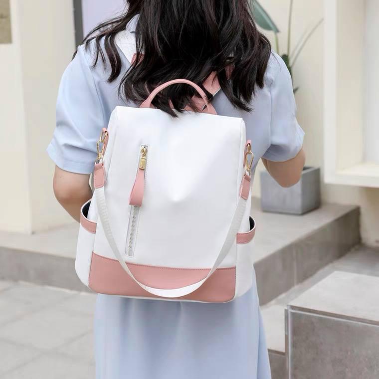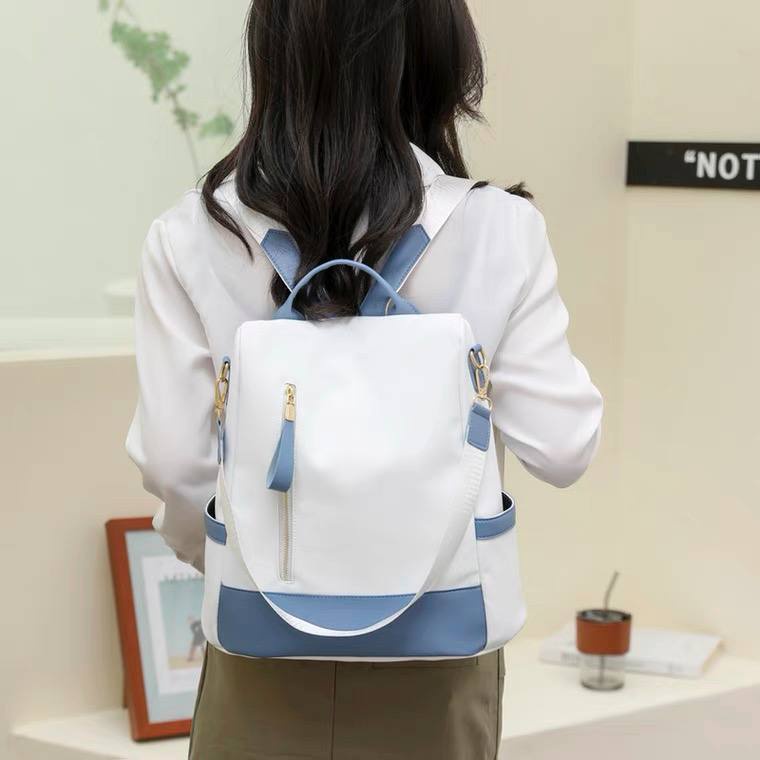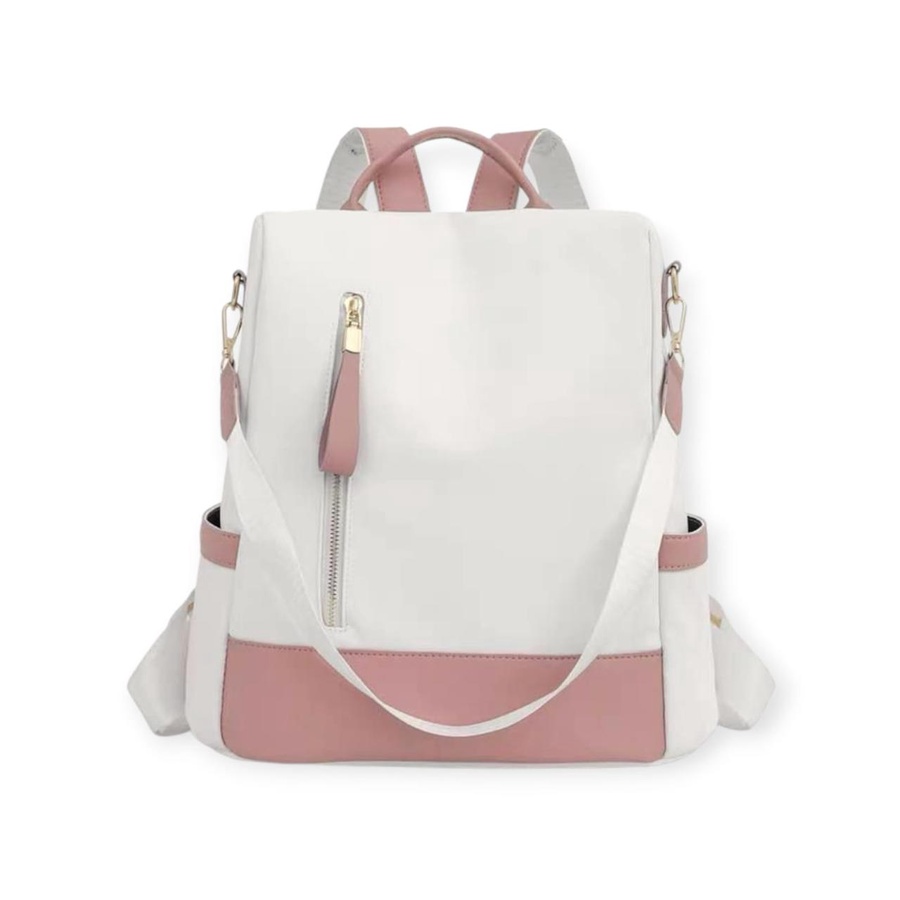 شنطة باك جلد بتصميم ثنائى اللون وحزام للكتف مصممة ضد السرقة