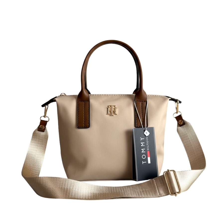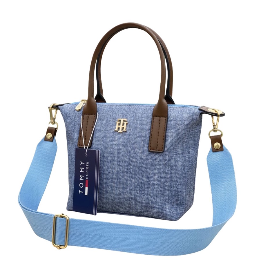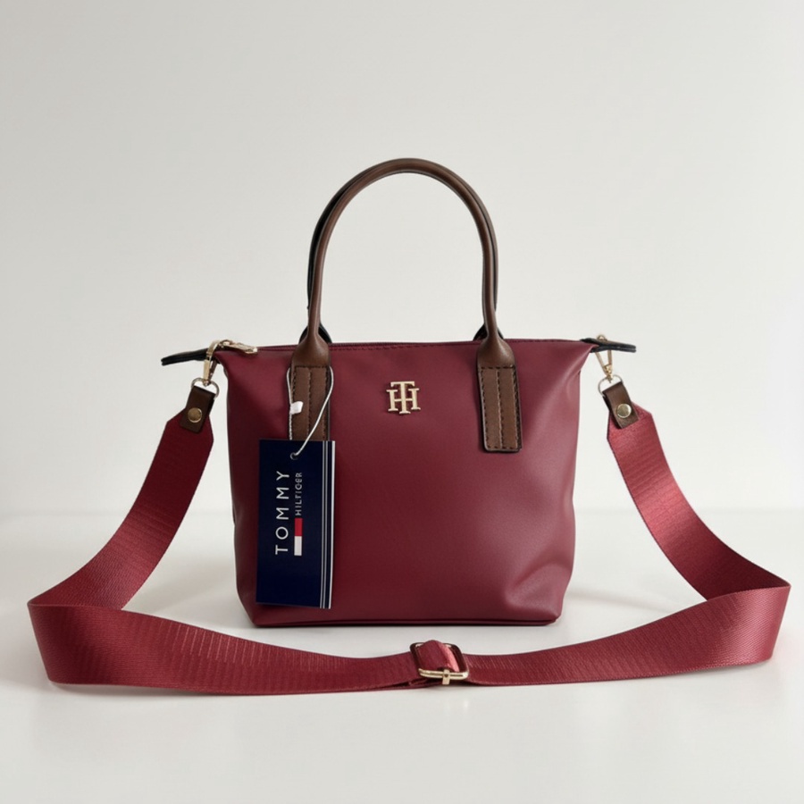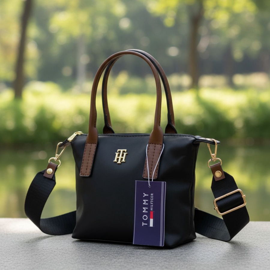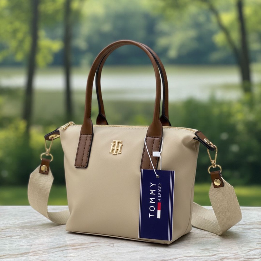 • الشعار: مزينة بشعار Tommy Hilfiger المعدني (TH) باللون الذهبي في المنتصف، مع التاغ الورقي الأصلي للماركة.