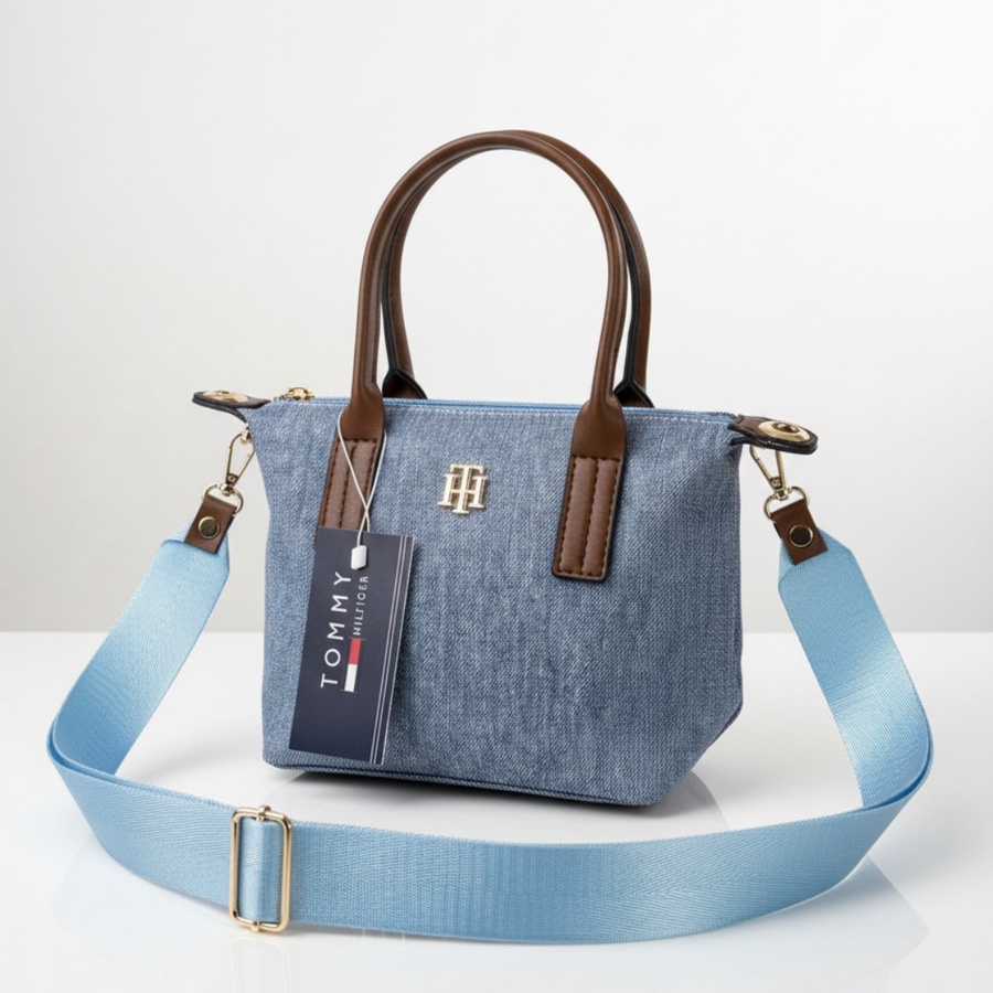 اجمعي بين الراحة والفخامة مع هذه الحقيبة المميزة من تومي هيلفيغر. مصممة من قماش الدنيم (الجينز) عالي الجودة الذي يمنحكِ مظهراً شبابياً وعصرياً، مع مقابض وتفاصيل من الجلد البني التي تضيف لمسة من الرقي الكلاسيكي. إنها القطعة المثالية لإكمال إطلالتك اليومية بأسلوب "Casual Chic".