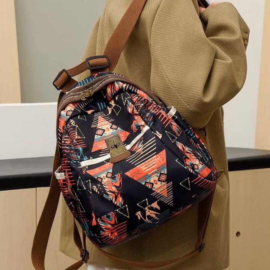 شنطة ظهر نسائية قماش كاجوال مطبوعة - تصميم عملي خفيف الوزن للآيباد | نقشات بوهيمية