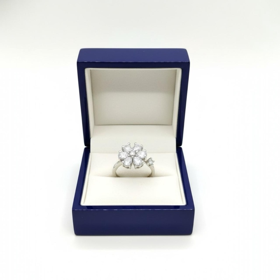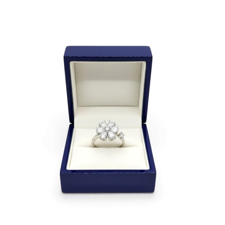 خاتم زركون فضى بفصوص لامعة تمنحك بريقًا يخطف الأنظار! مصنوع من خامات عالية الجودة غير قابلة للصدأ أو تغيير اللون