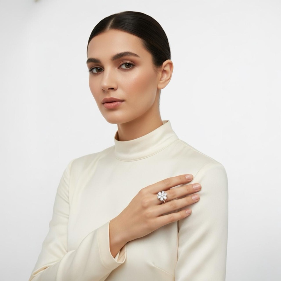 خاتم إكسسوار نسائي بتصميم فاخر ولمعة زركون