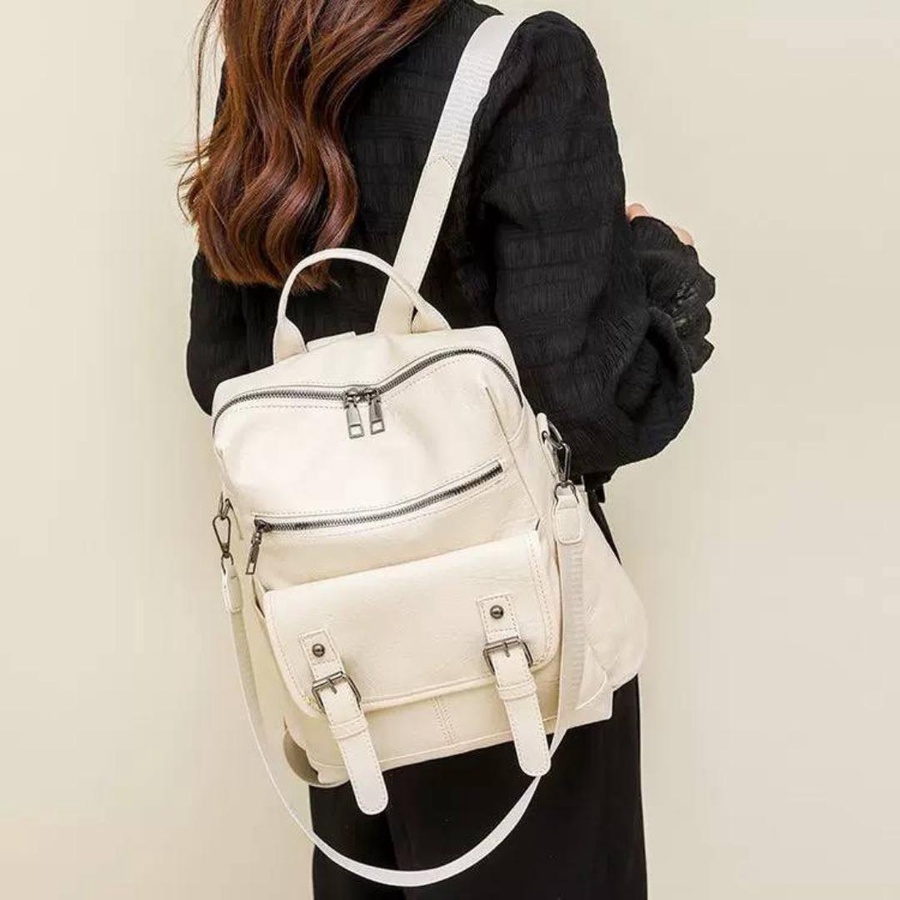 الخامة جلد ممتاز ناعم وقوي في نفس الوقت، مع تصميم ذكي يسمح باستخدامها كشنطة ظهر أو شنطة كتف حسب راحتك.