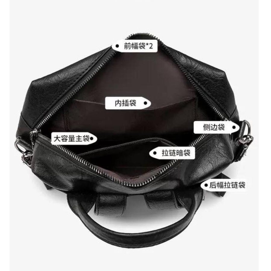 الشنطة مزودة بعدة جيوب منظمة تساعدك على ترتيب أغراضك بسهولة، مع سوستة قوية وإكسسوارات معدنية متينة تضيف لمسة فخامة وتحمّل عالي للاستخدام اليومي.